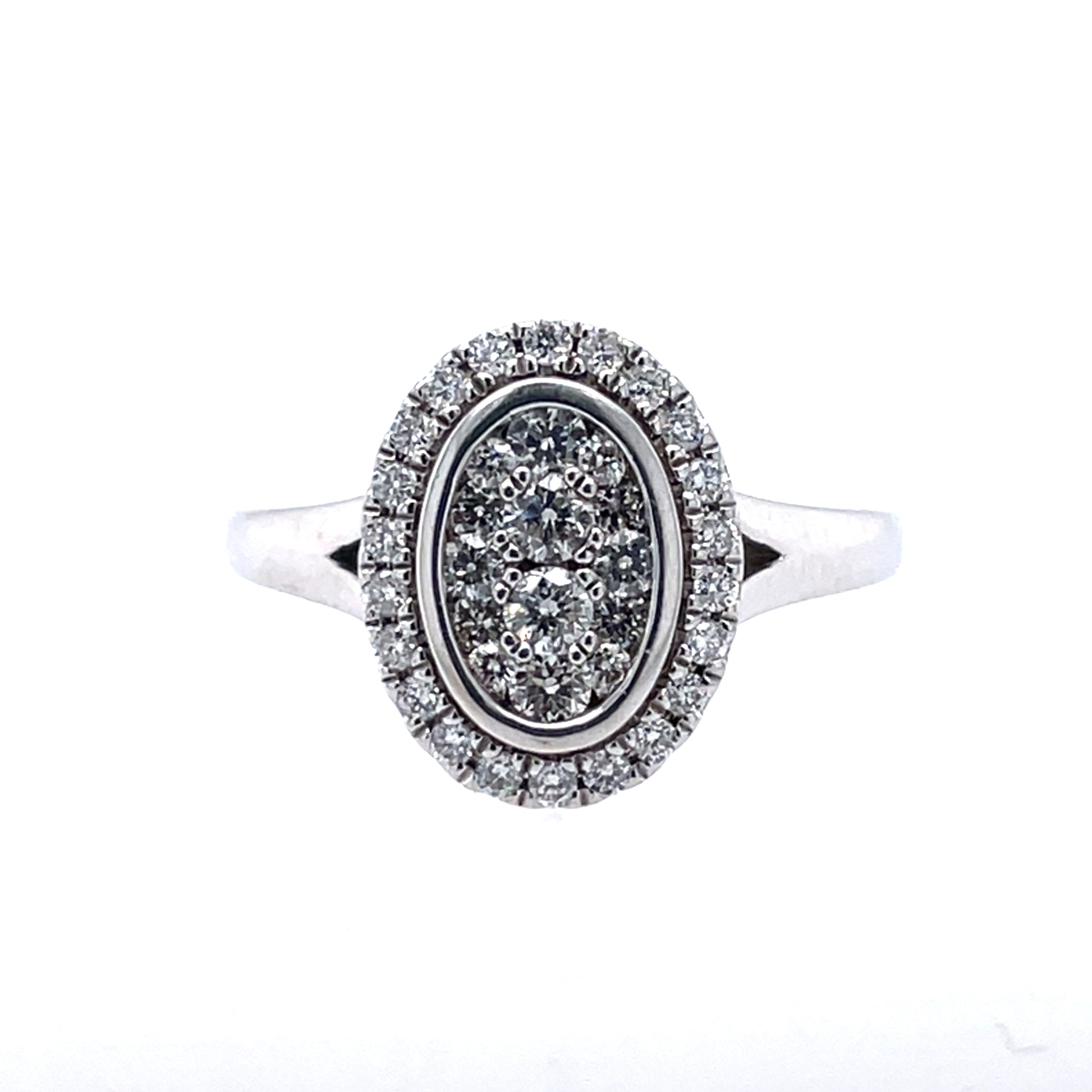 9ct White Gold Diamond Oval Halo 0.50ct Engagement Ring DR061B