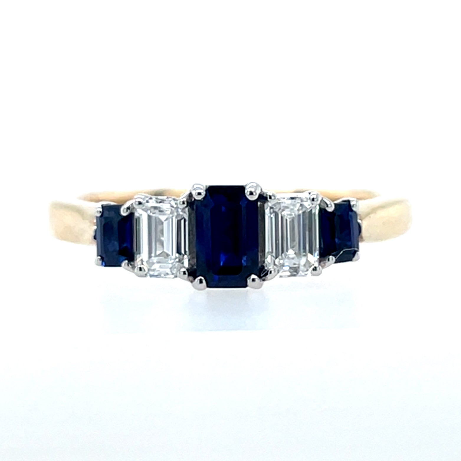 9ct Yellow Gold Lab Grown Sapphire & Diamond Five Stone Ring.