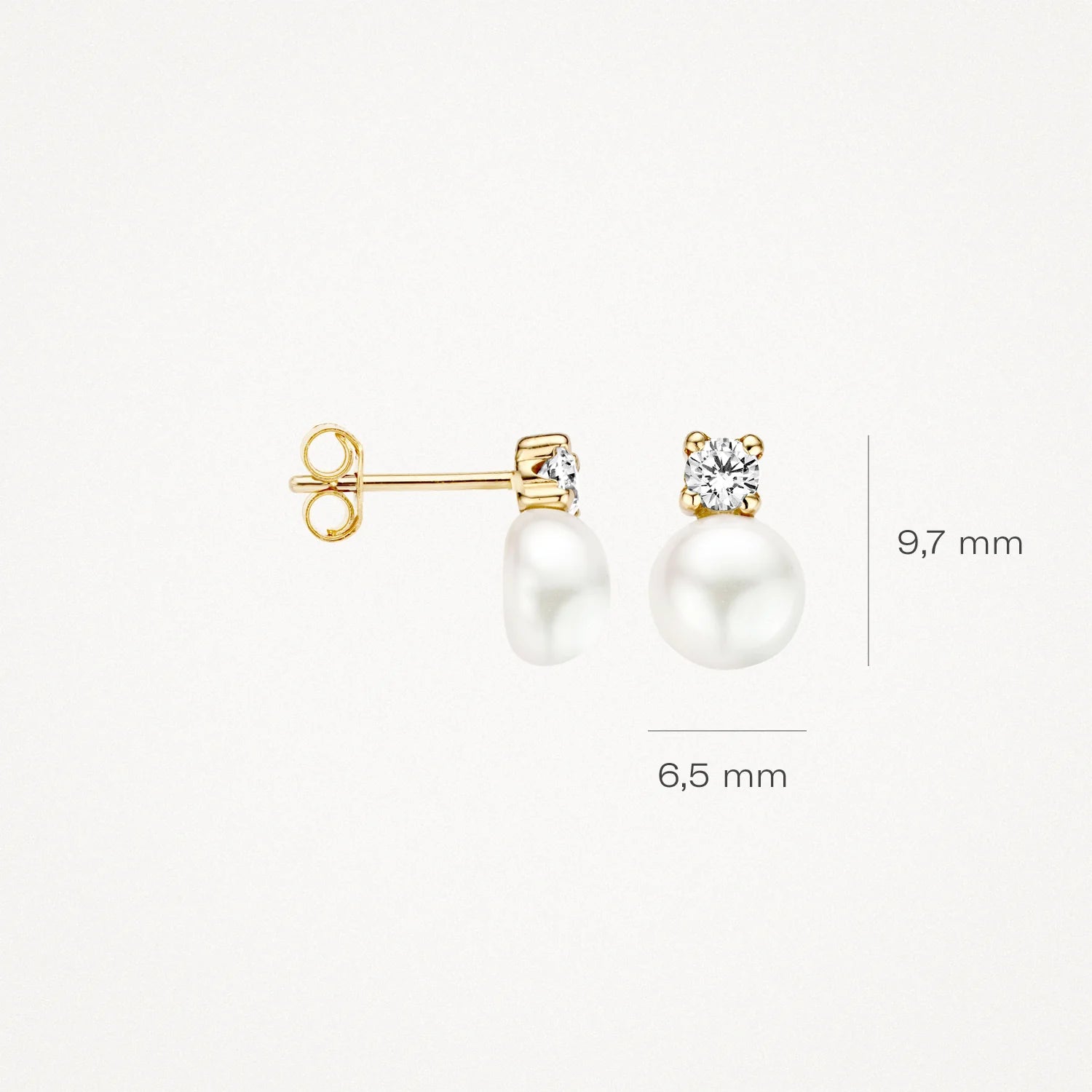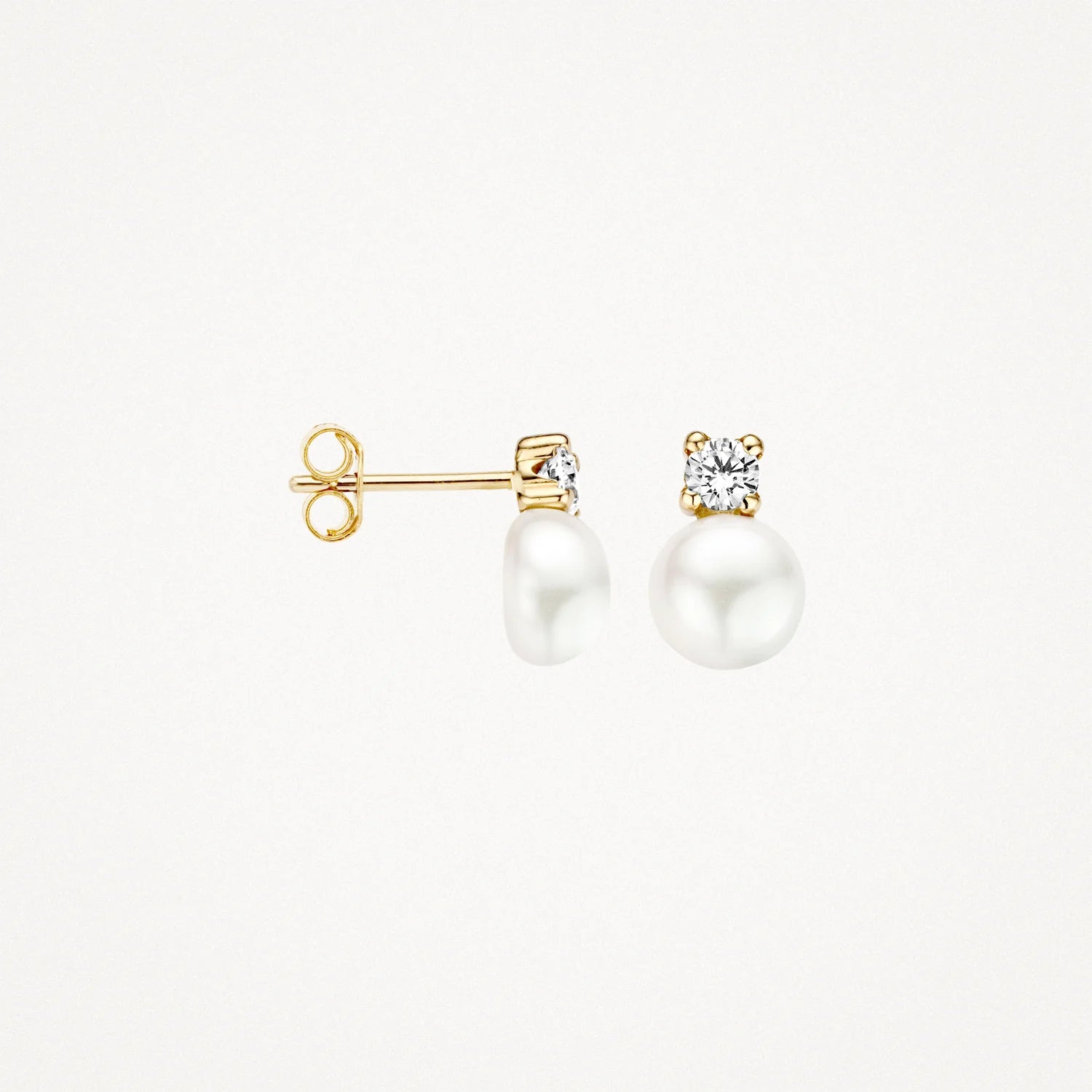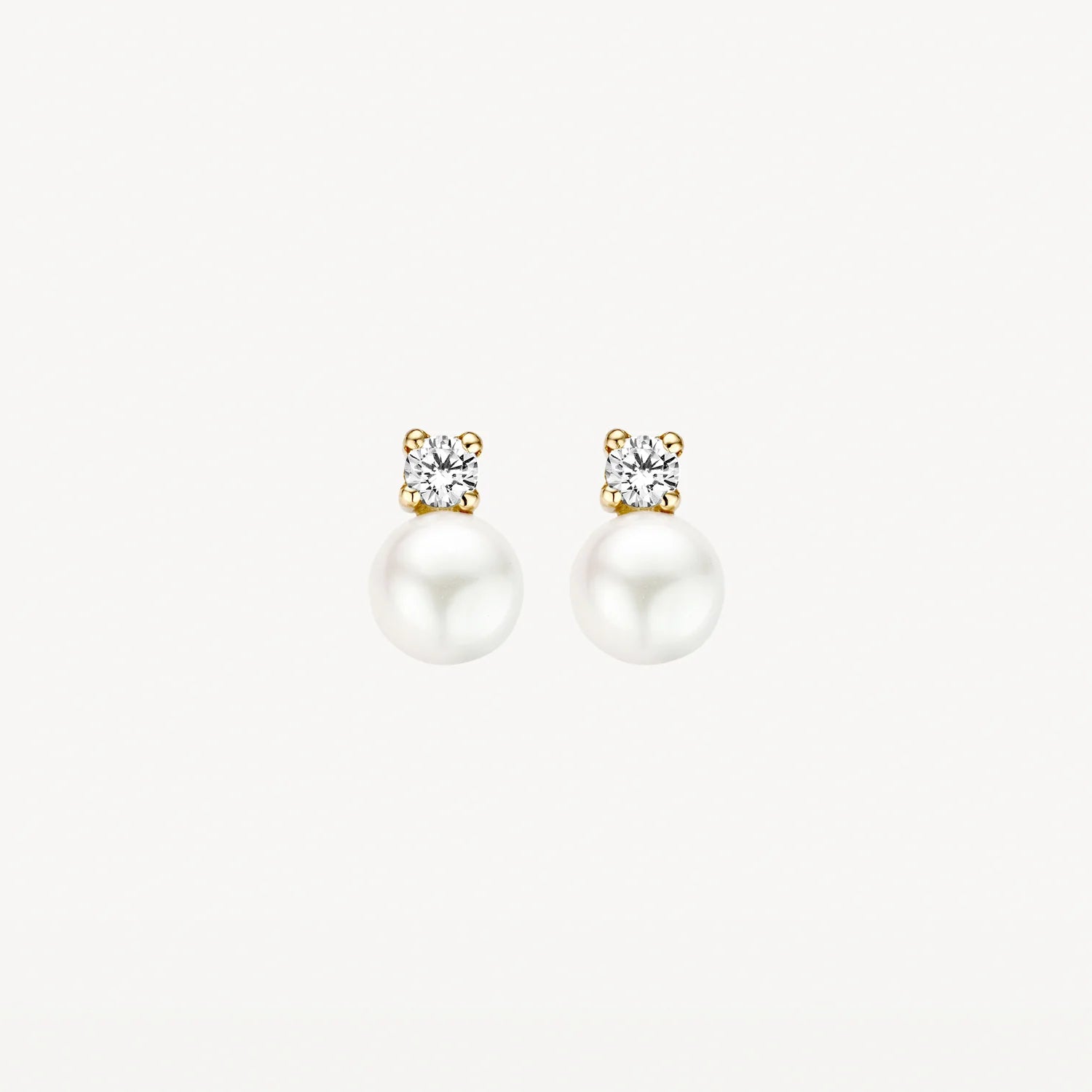 Pearl and white zirconia form an elegant combination in these 14k gold earrings. The stones have a diameter of 3.3 mm and the pearl is 6.5 mm. Beautiful on its own or beautiful with other (pearl) jewellery from our collection.