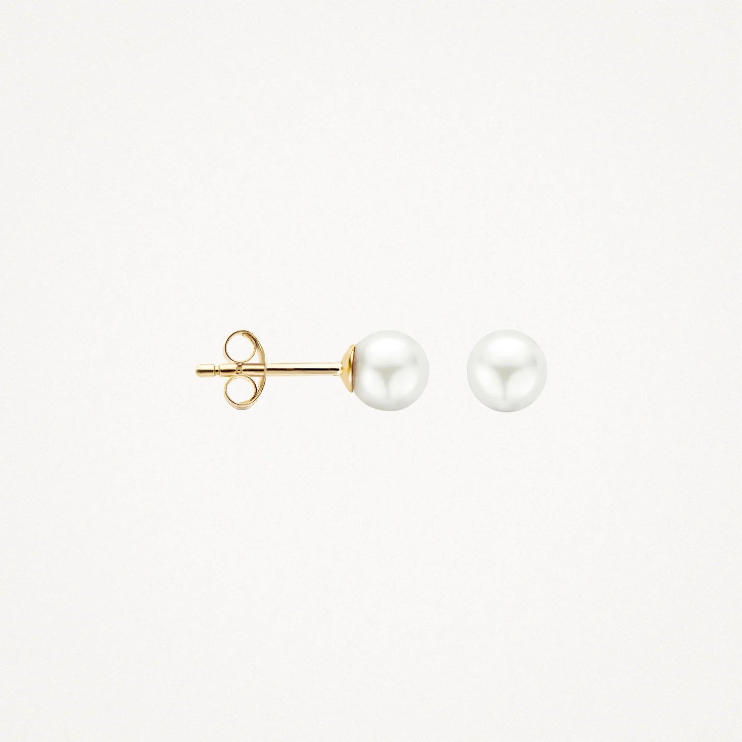 These pearl earrings are made from a white freshwater pearl, set in yellow gold. The pearl has a diameter of 5 mm. Wear these pearl stud earrings combined with a necklace with a pearl pendant for a timeless feminine look.