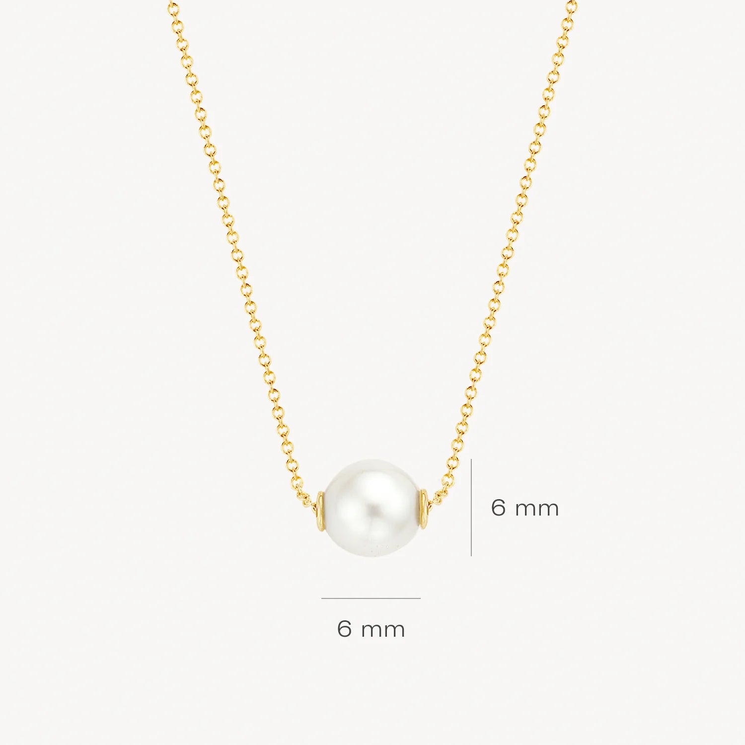 This classic necklace made of 14k yellow gold has a pearl pendant with a diameter of 6 mm. The length is 42 cm and the necklace fits perfectly with other (pearl) jewellery from our collection.
