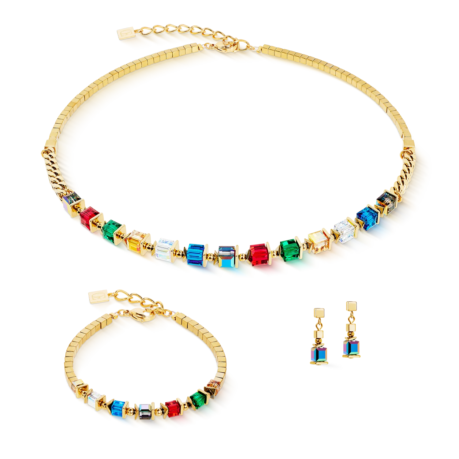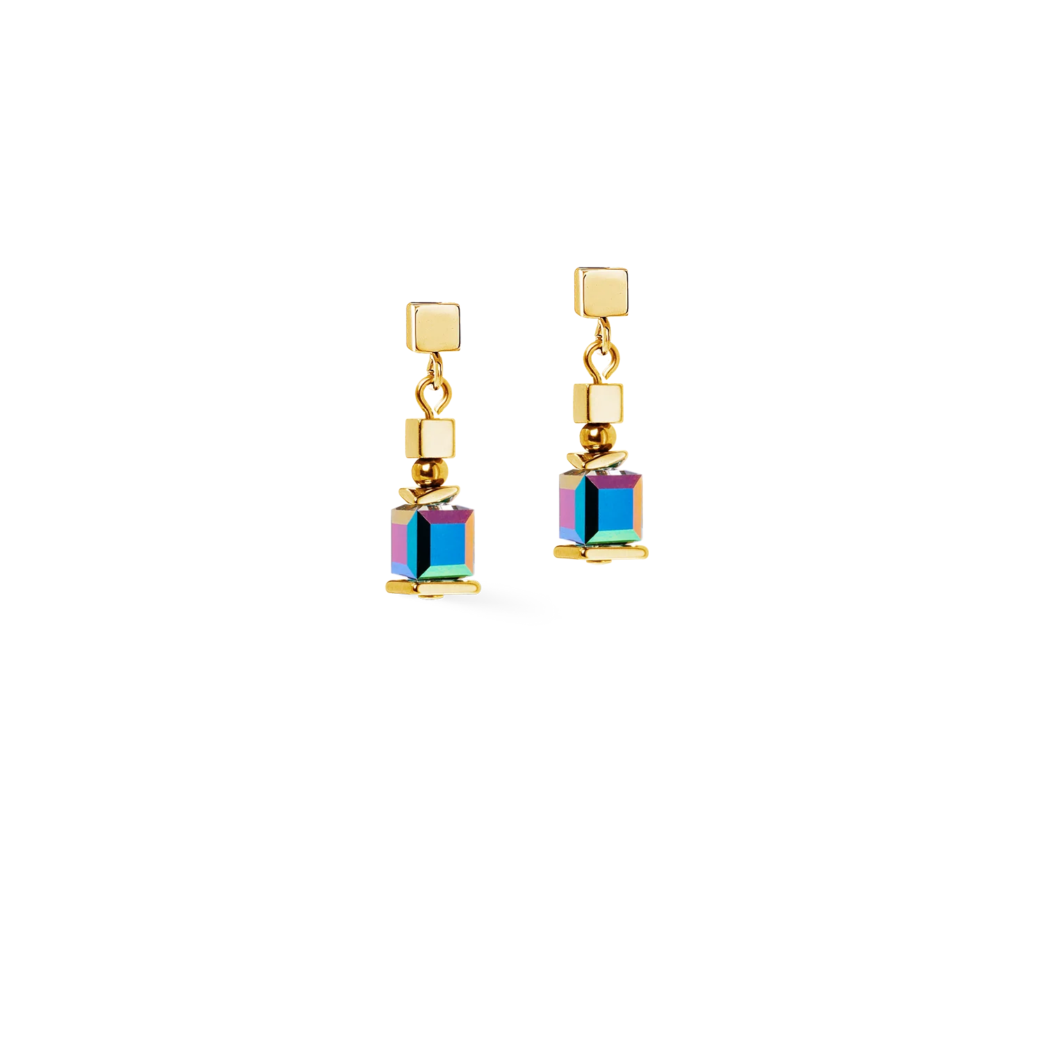 Earrings Sparkling Cubes Fusion Chain gold-multicolour