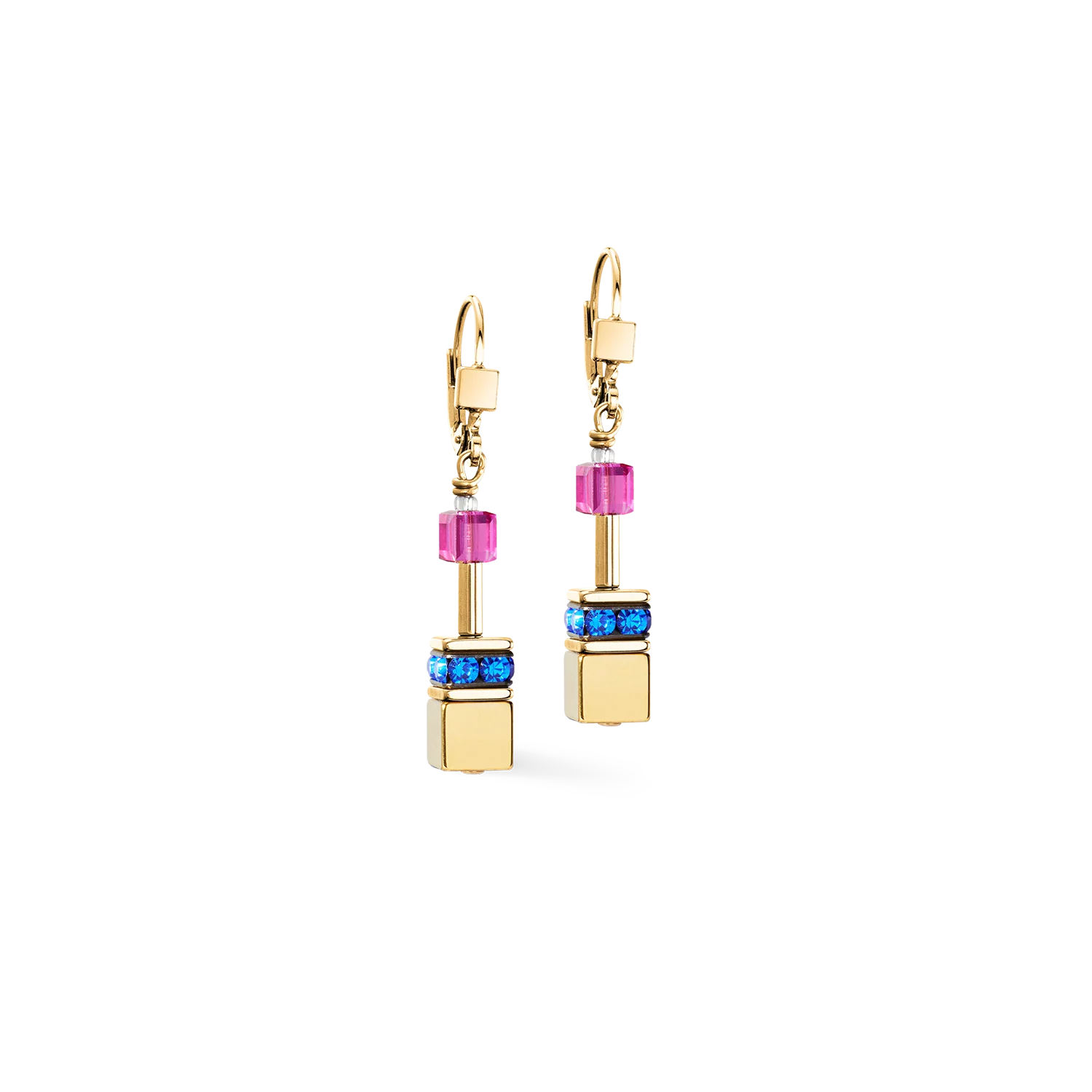 These earrings combine the iconic GeoCUBE® design with a touch of the rainbow. Radiant crystals and gold-coloured hematite with a titanium oxide finish create a modern, colourful elegance. Whether worn individually or as a set with a necklace and bracelet - an expressive gift for anyone who wants to show their colours.