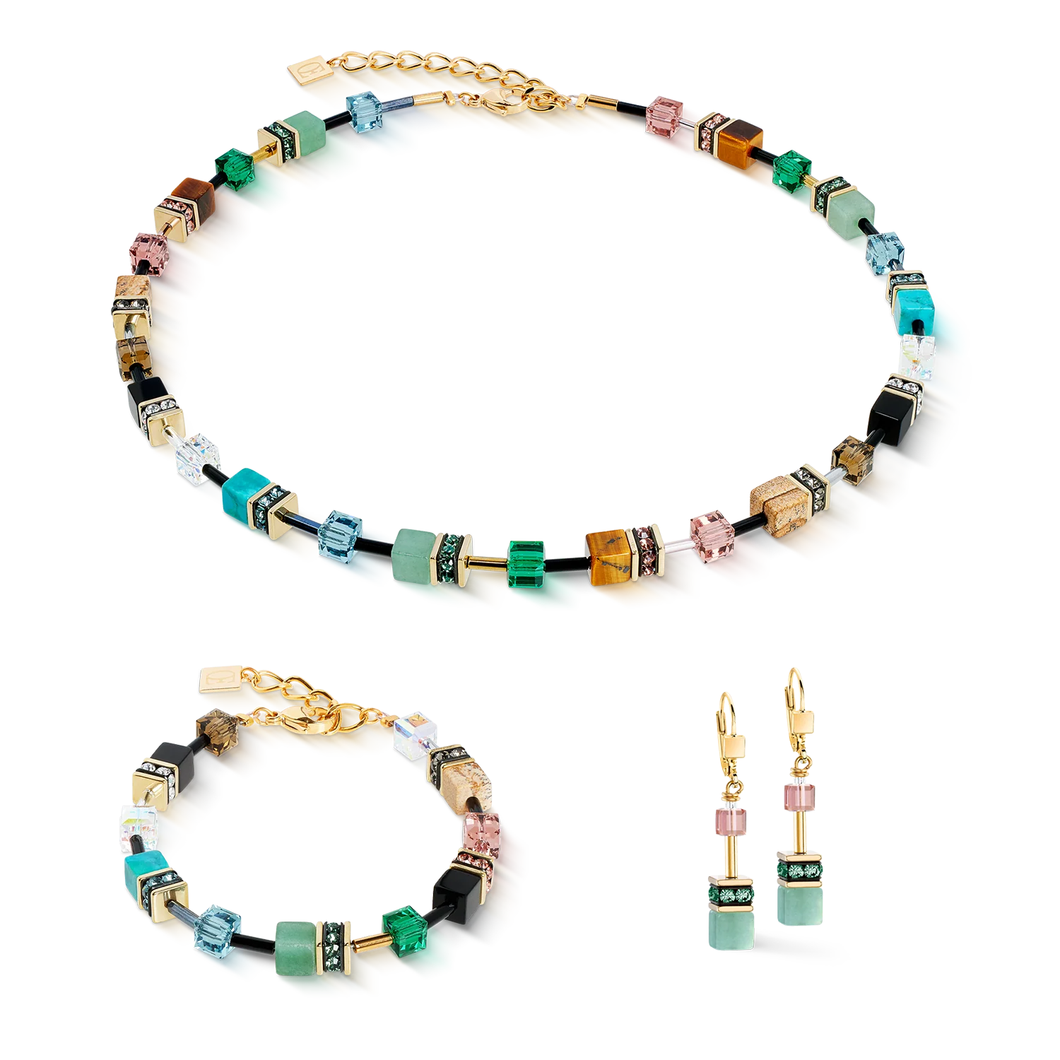 Colours with meaning - The Art Nouveau bracelet is more than just jewellery - it is a talisman. Turquoise brings serenity, aventurine gives joie de vivre, landscape jasper connects with the earth and tiger's eye strengthens self-confidence. Swarovski® crystals and crystals catch the light and underline the powerful colour palette. The mix of natural stone and iconic GeoCUBE® design makes this bracelet a modern companion with timeless symbolism.