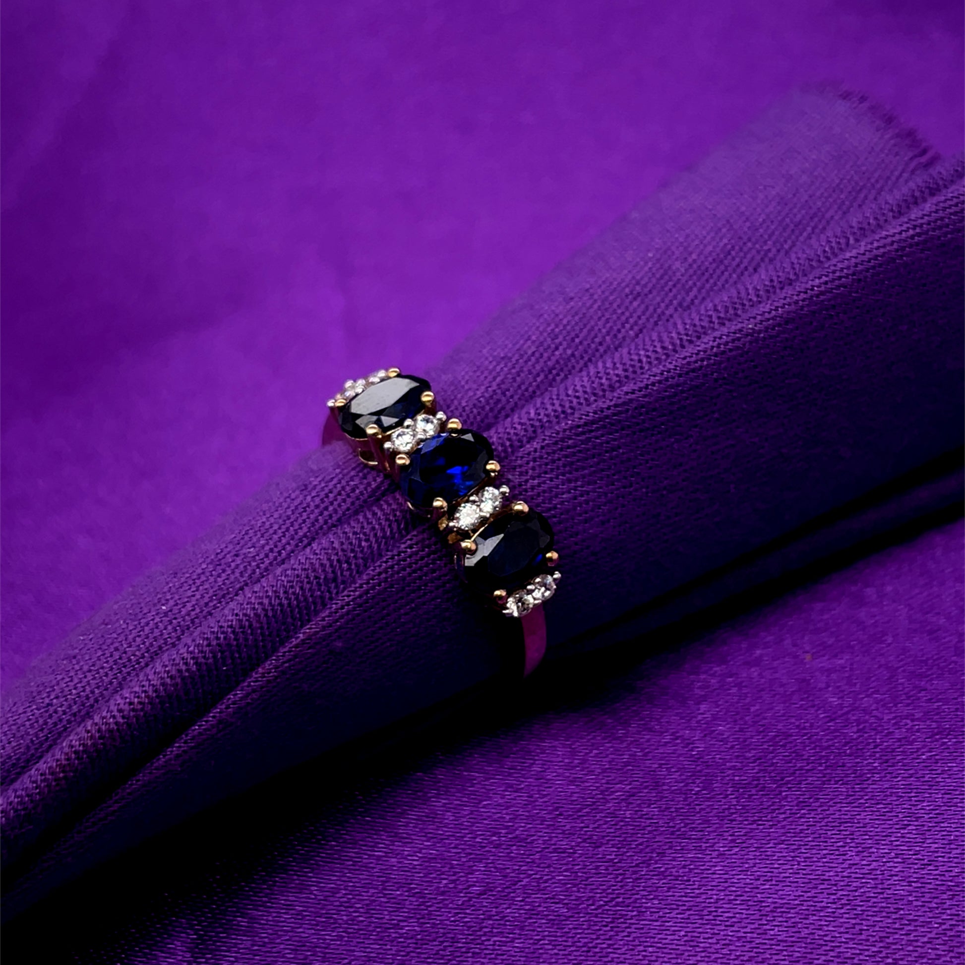 9ct Gold Sapphire CZ Trilogy Ring GRS254