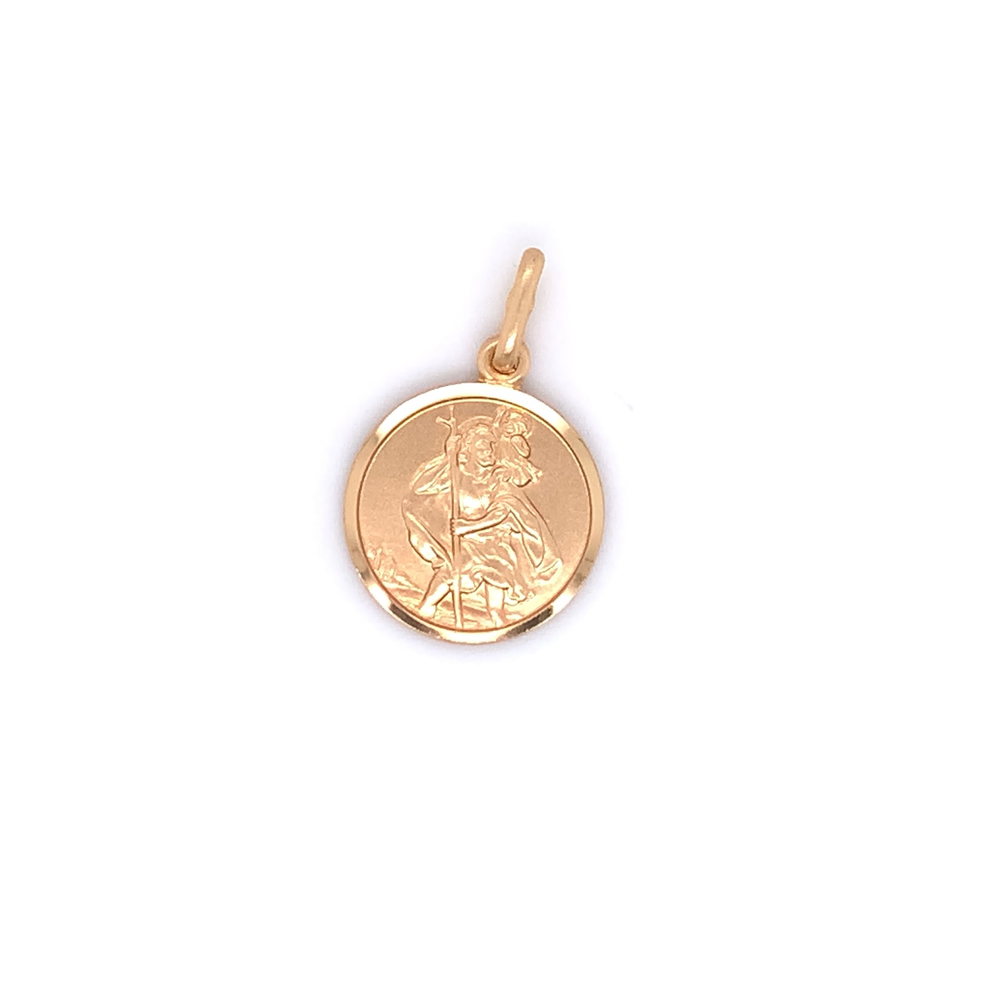 9ct yellow gold round St. Christopher medal on fine 16/18 inch chain.