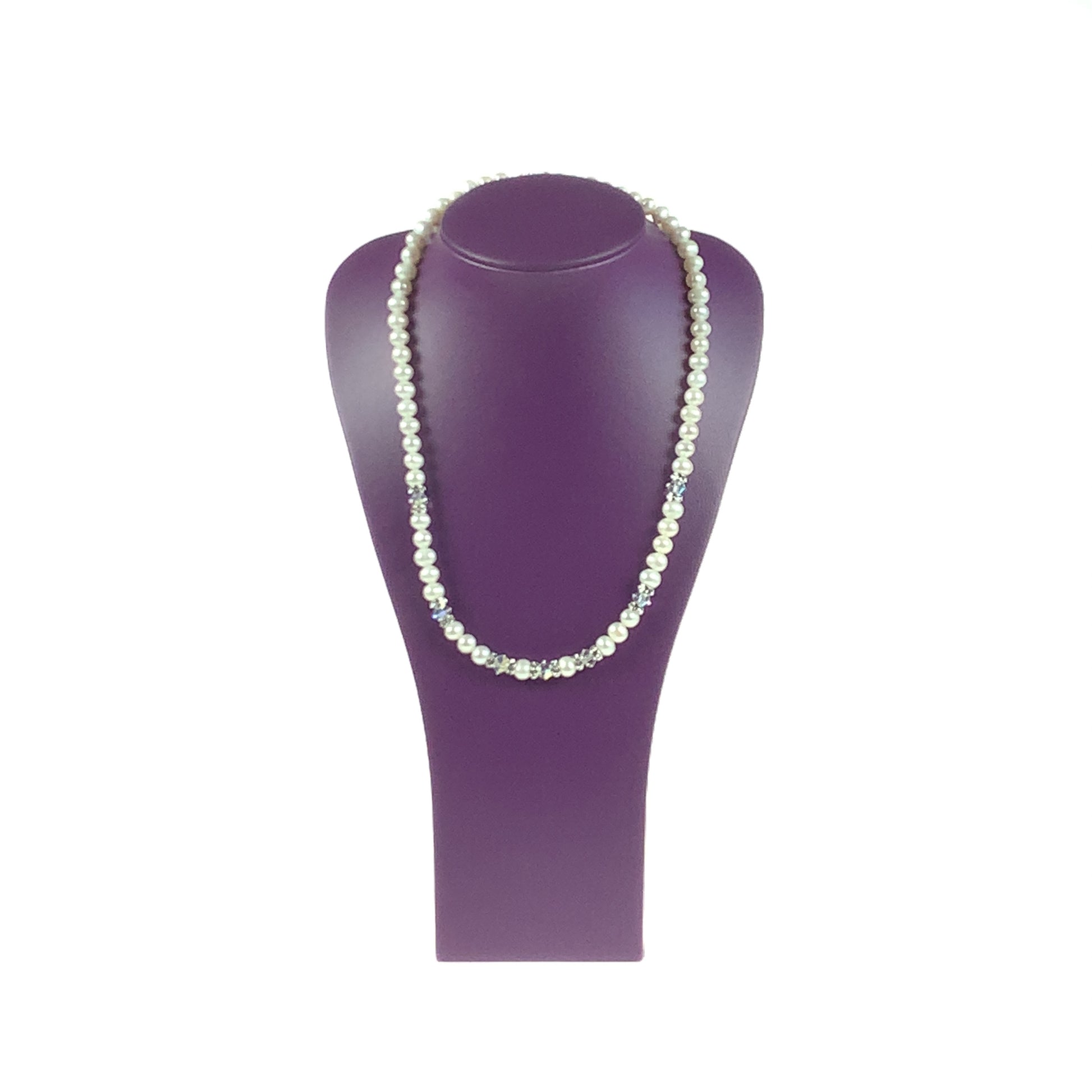 Freshwater Cultured Pearl 5.5-6mm Crystal Rondelle Necklace, with sterling silver trigger clasp.