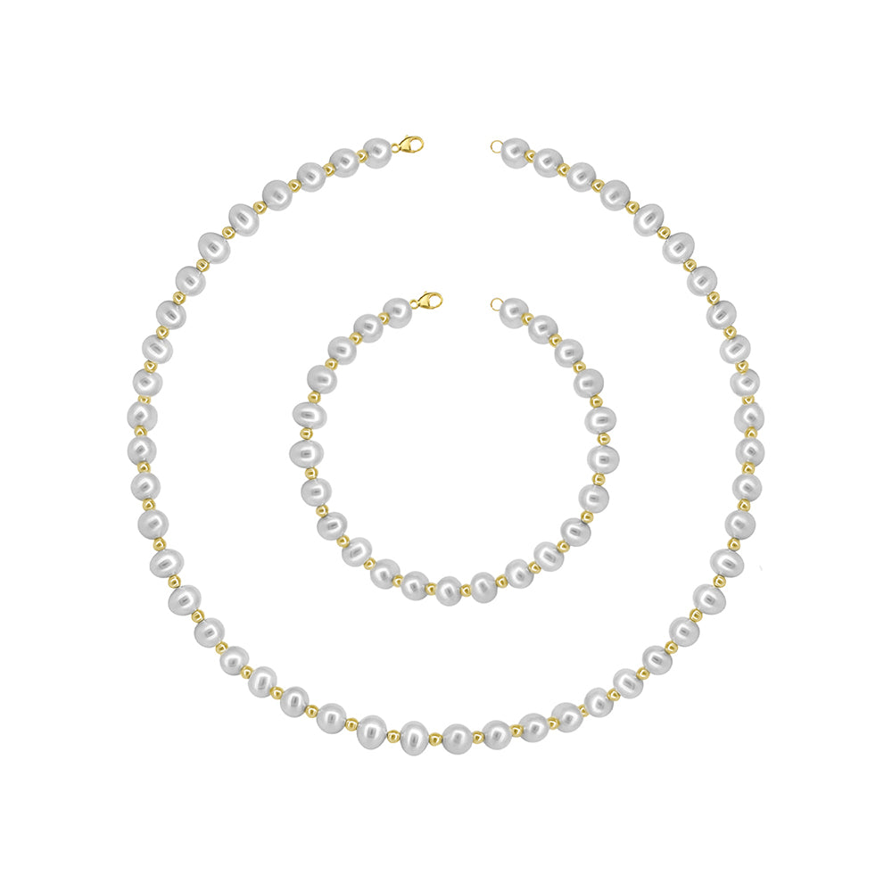 Freshwater 6.5/7mm A Pearl Necklace with Sterling Silver Yellow Gold Plated Beads & Lobster Clasp.