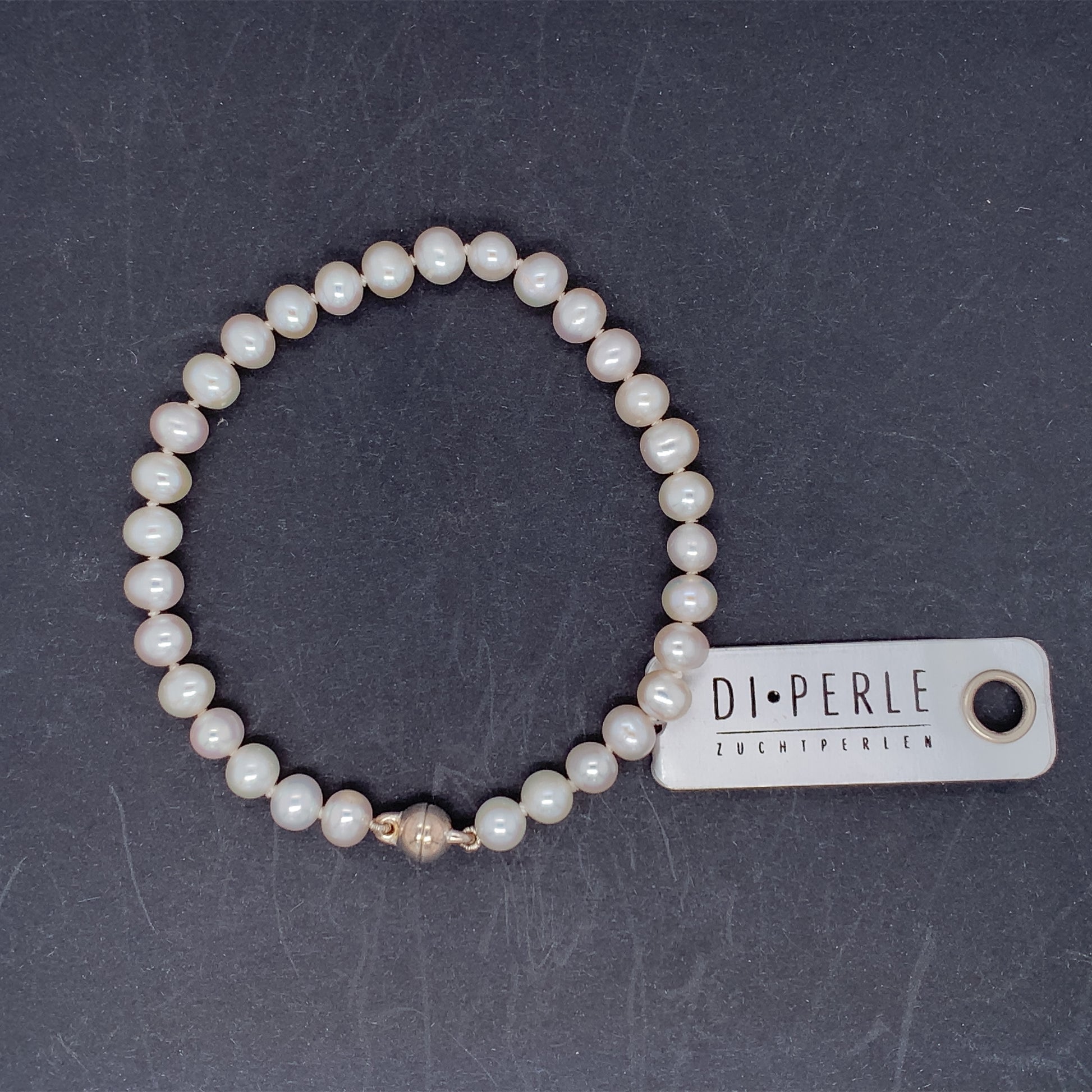Freshwater Cultured Pearl 5-6 mm bracelet, individually knotted with silver magnetic ball clasp.