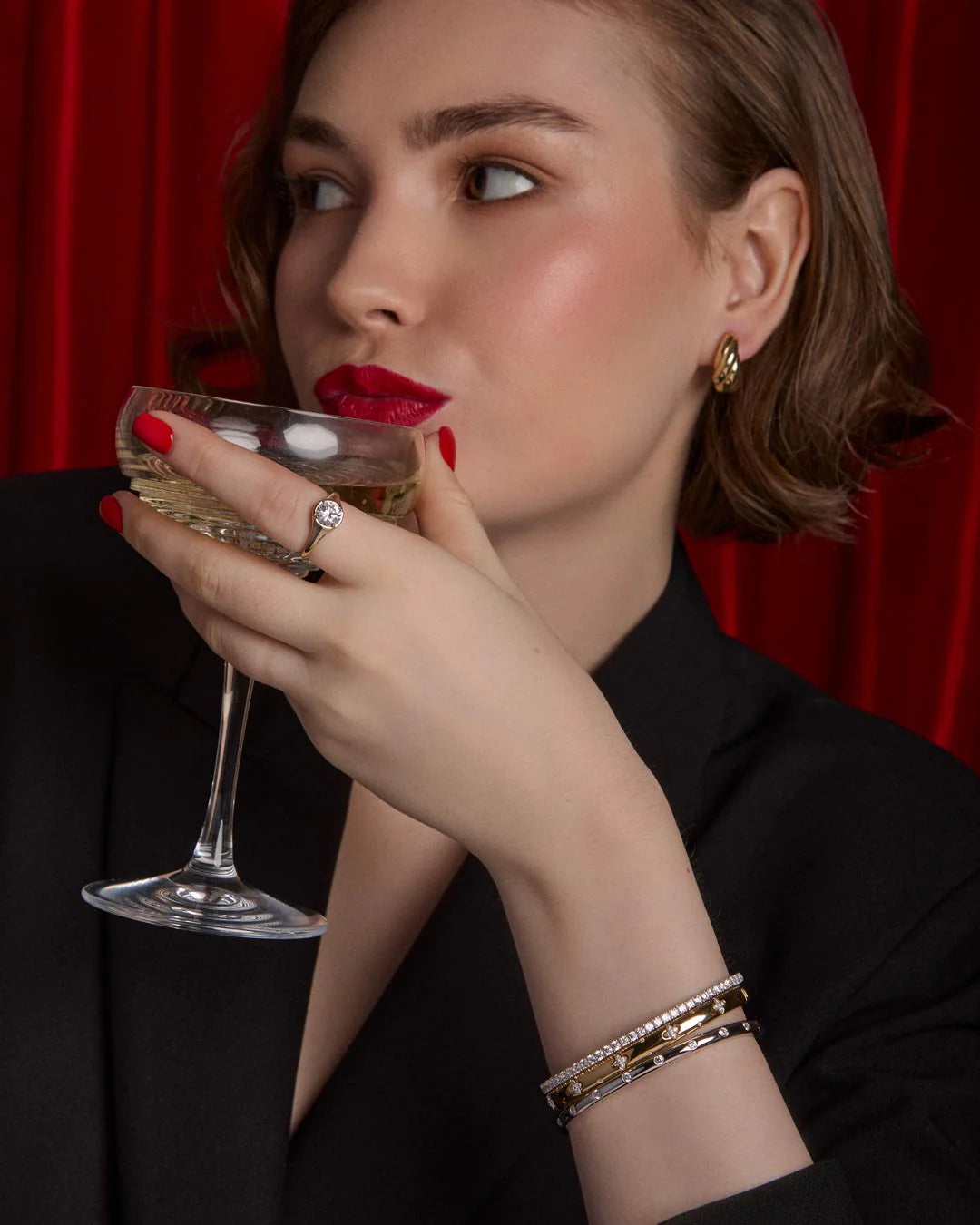 Add polish to your wrist stack with this gold plated CZ clover bangle. Designed in sterling silver and coated in a thick layer of 18ct gold, it’s finished with sparkling cubic zirconia clovers for a refined, understated piece. This gold plated bangle is made to be worn alone or added to your bracelet stack for a bolder look.
