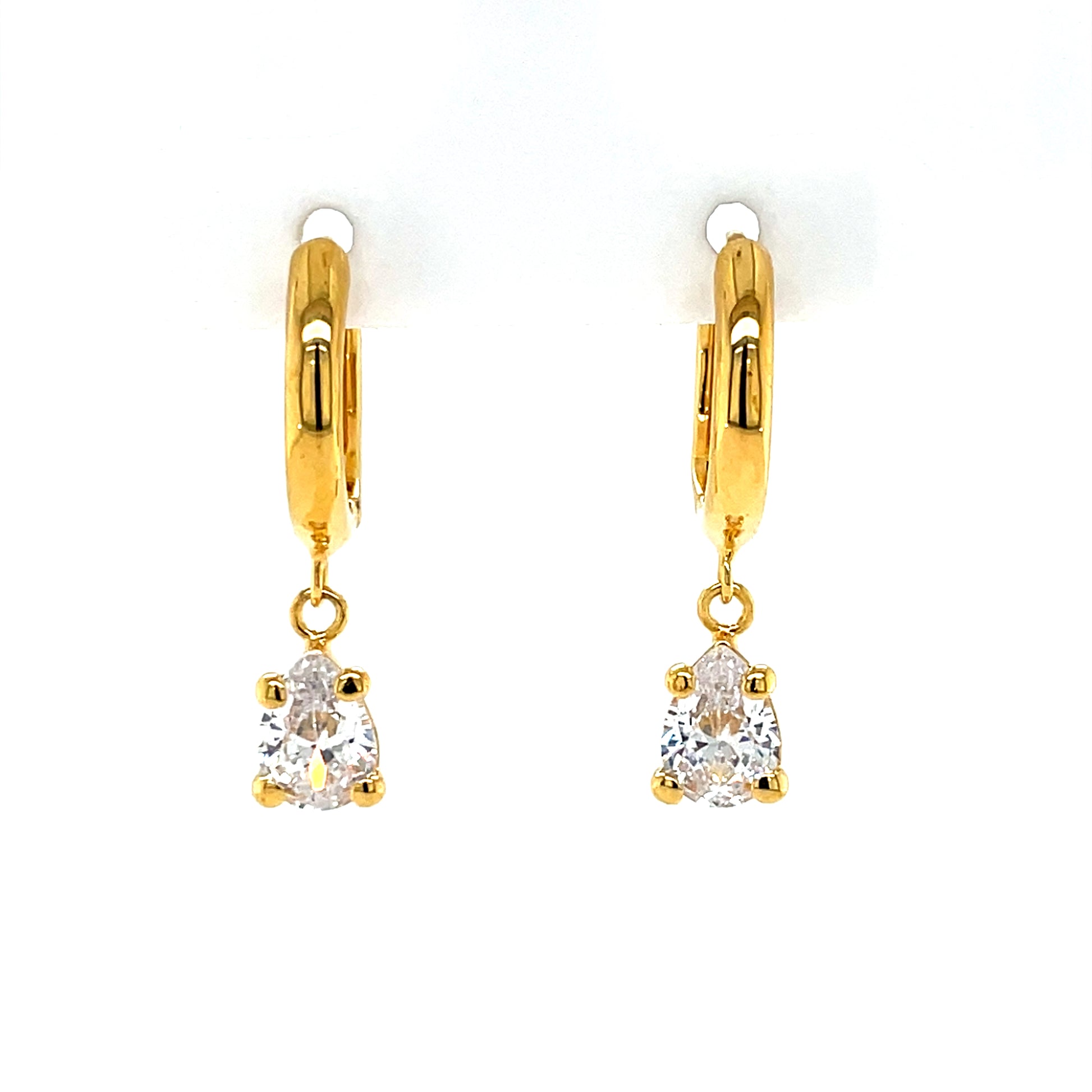 Gold-plated Silver 13mm Huggie Earrings with Teardrop CZ Dropper .