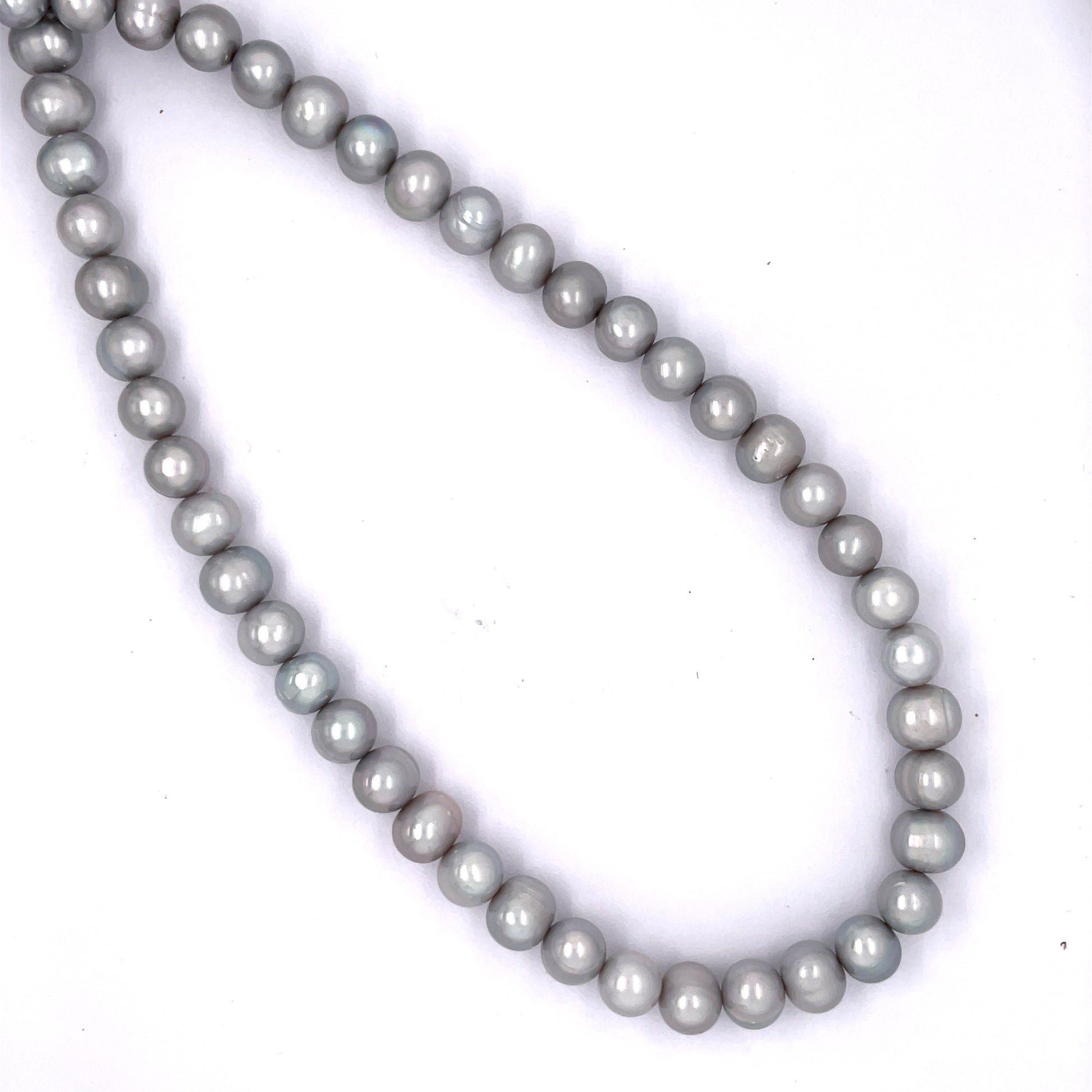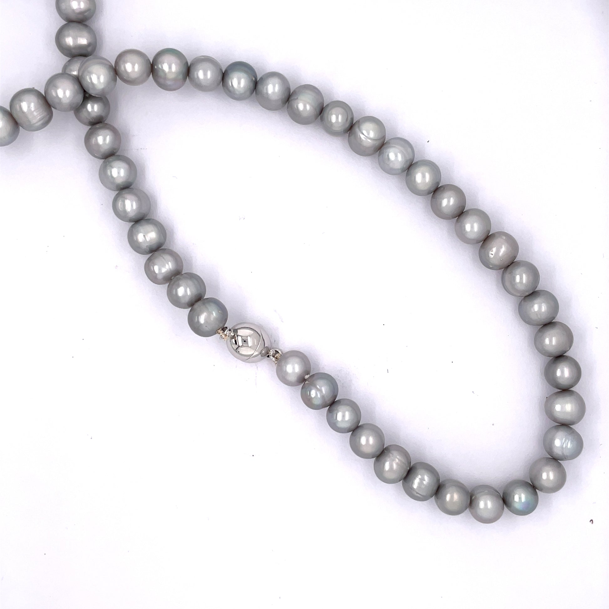 Grey 8-8.5mm Freshwater Pearl Necklace, with silver magnetic ball clasp.