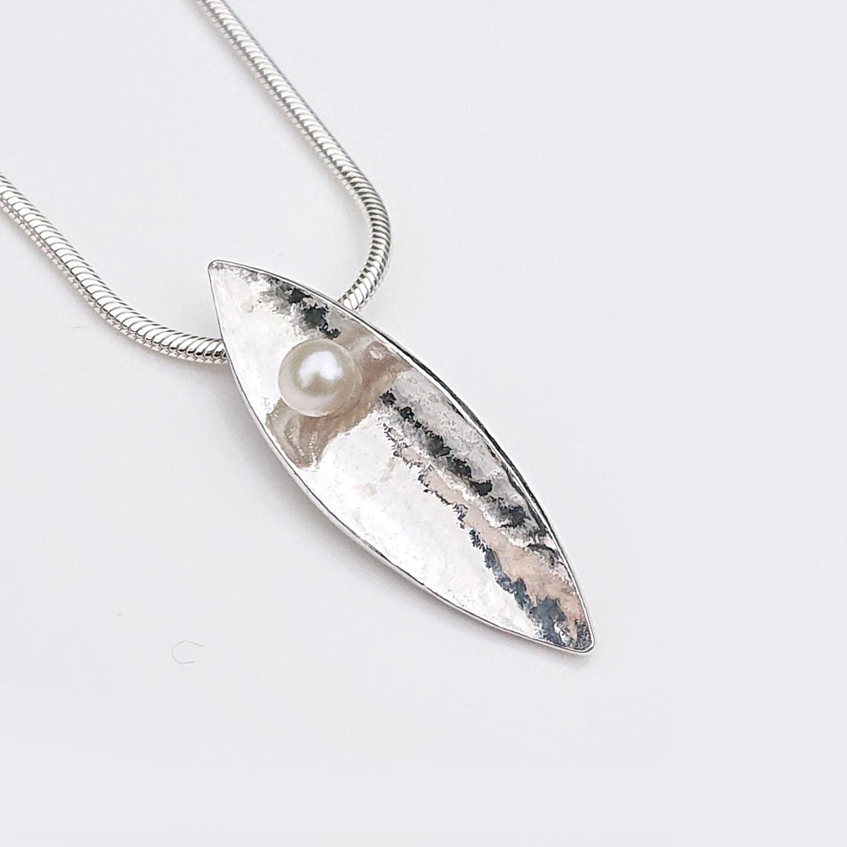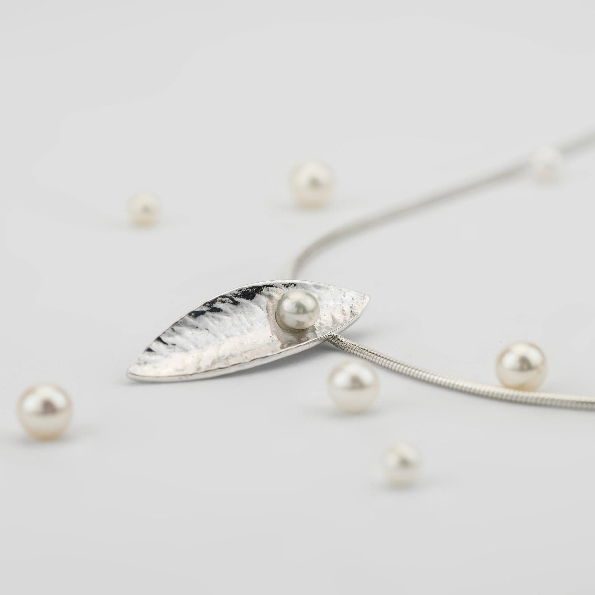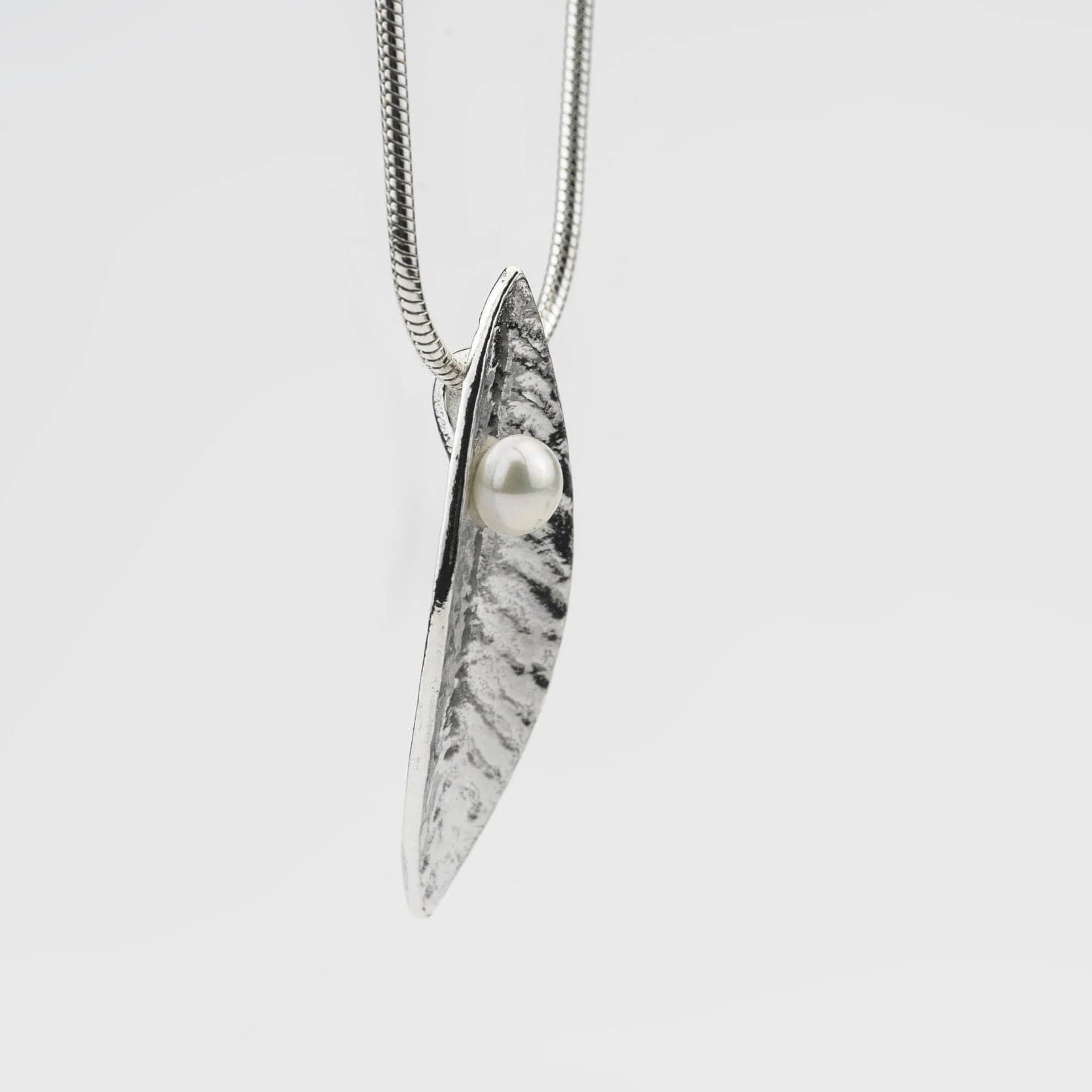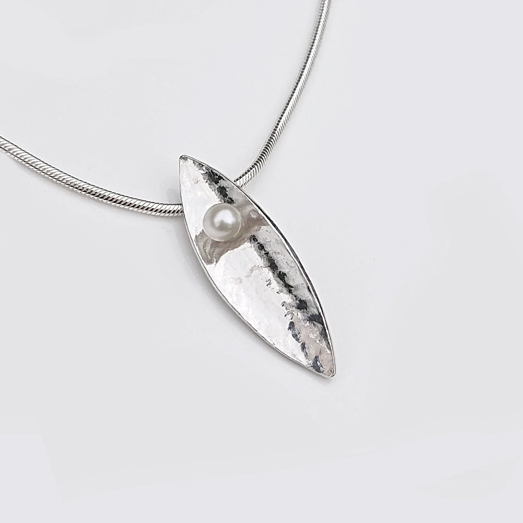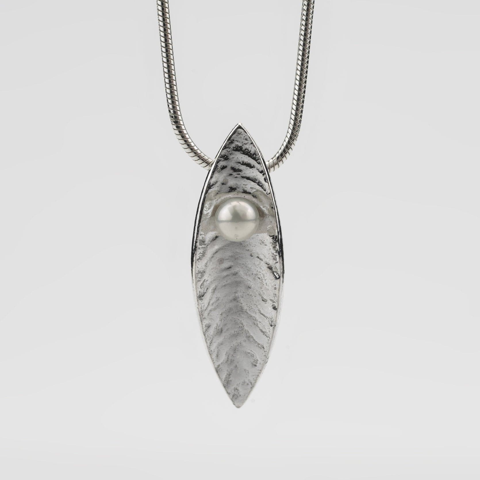 Leaf Sterling Silver and Fixed Pearl Pendant