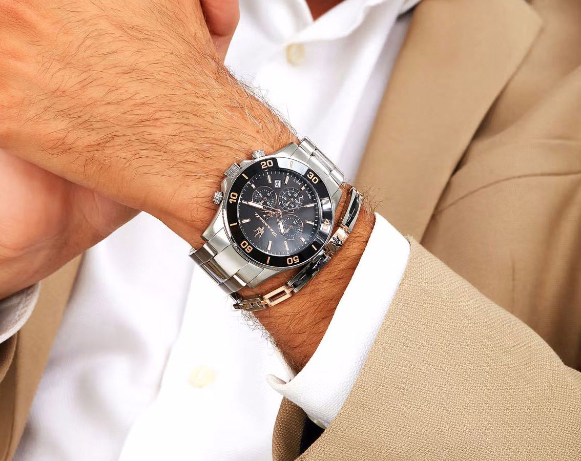 MASERATI COMPETIZIONE 43mm Stainless Steel case chrono Movement black dial Stainless Steel bracelet CERAMIC BEZEL CERAMIC Rose Gold BRACELET special pack JM523ATZ34