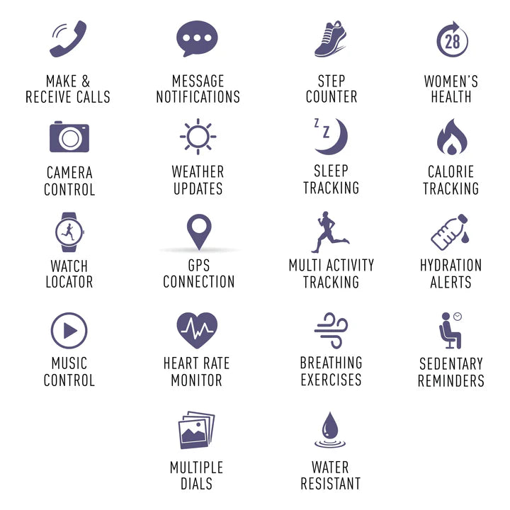 The Series 50 also offers an extensive range of lifestyle & wellness features, including step count, heart rate monitor, blood oxygen, cycle tracking, calories, sleep analysis, multiple sports tracking and more.