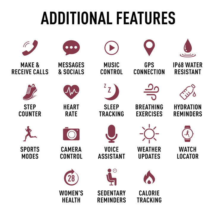 Experience Reflex Active in ultra-high definition with the SPECTRA 300 S AMOLED smart watch. Enjoy an amazing collection of exclusive dials on the 1.85'' Amoled display with exceptional clarity and incredible colour reproduction coupled with a vibrant berry red aluminium bezel, finished with a berry silicone strap. Additional benefits include Always-On display, meaning you no longer need to touch your watch or lift your arm to activate the display and our Dual-Time feature shows the time home and away, to ensure you always keep on track while travelling. Stay connected wherever you are, make and receive calls directly to your watch, and enjoy the convenience of messages and social notifications on your wrist. Spectra offers all the lifestyle and wellness features you need, including helpful health benefits like step count, heart rate, blood oxygen, calories and sleep analysis. You'll also enjoy music control, GPS connection, camera control and so much more! Personalise your watch with an incredible choice of exclusive Reflex Active dials or for a unique display, use a photo from your phone gallery. IP68 water resistant. IOS 12.0+ and Android 9.0+ Compatible.