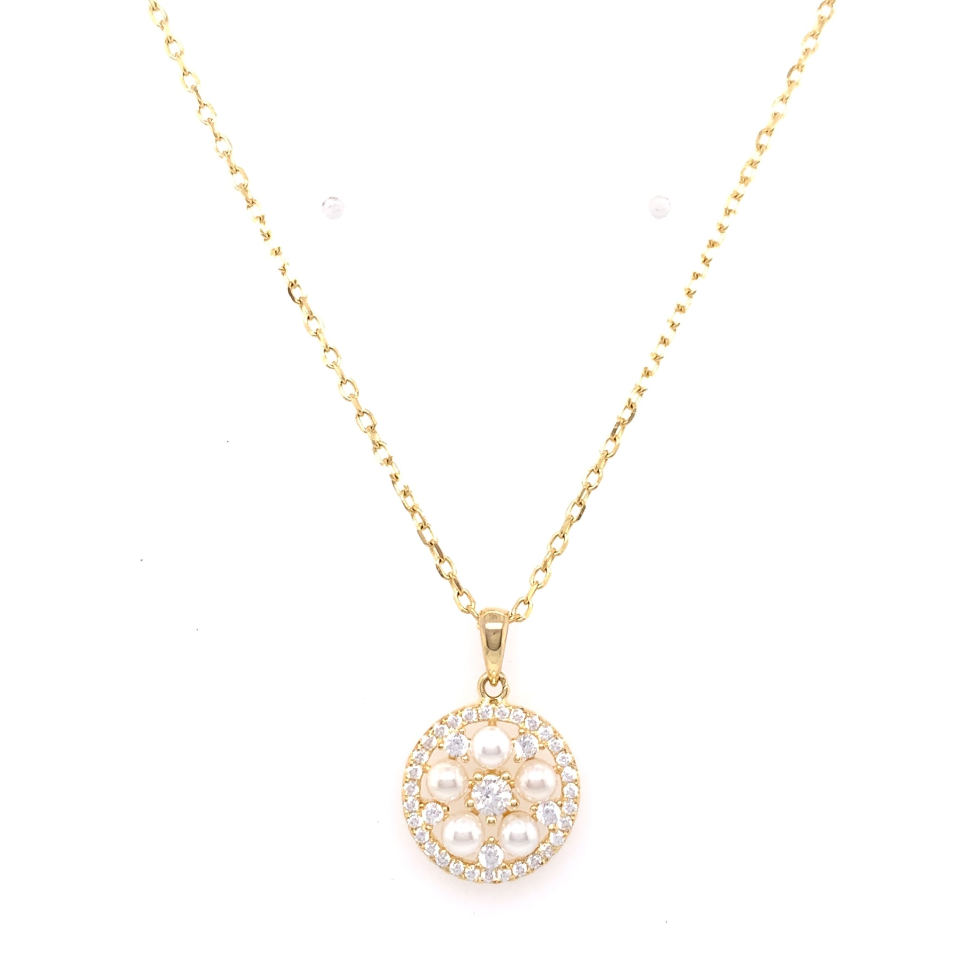 Silver 18ct Gold-Plated Vintage Pearl CZ Pendant on 16-18 inch chain.