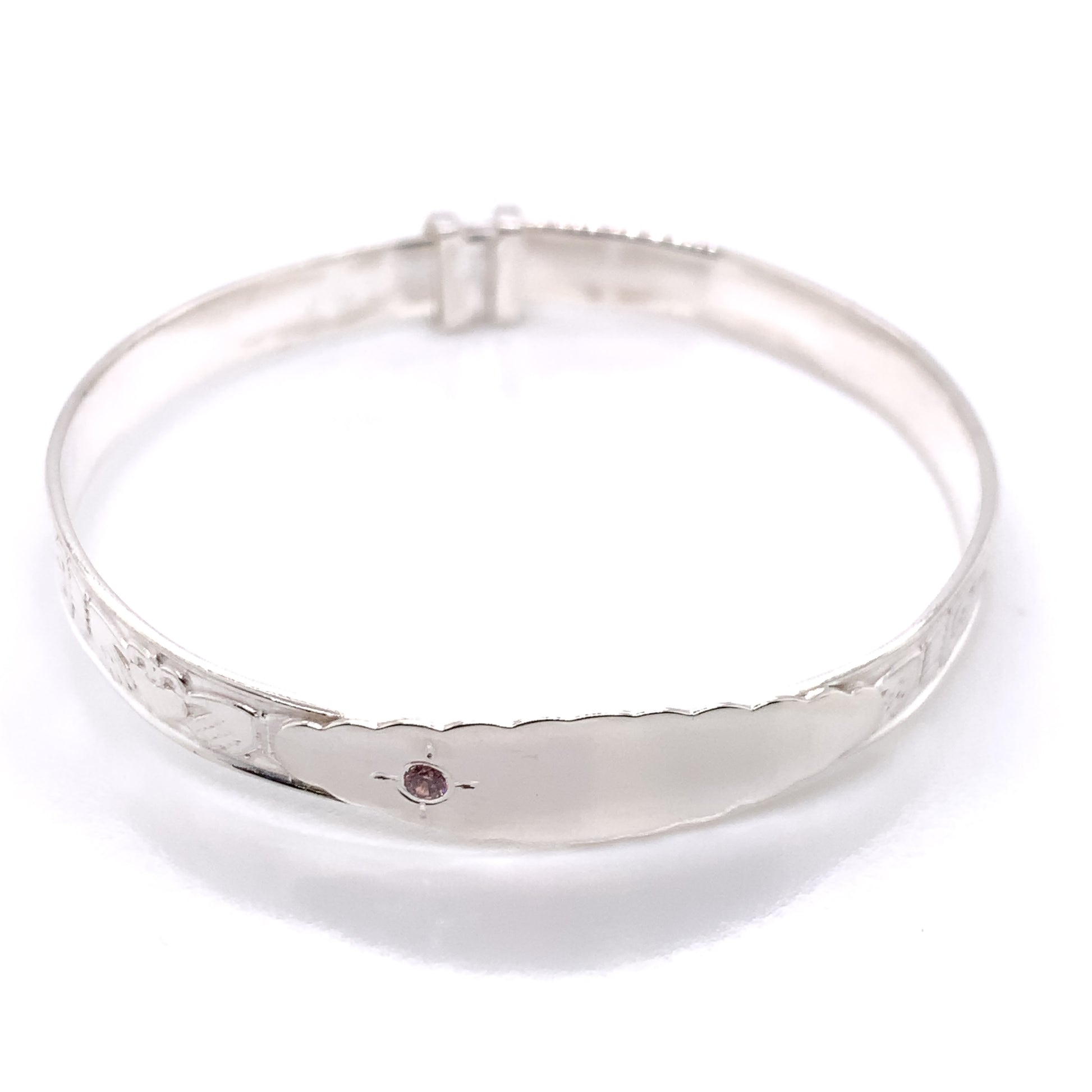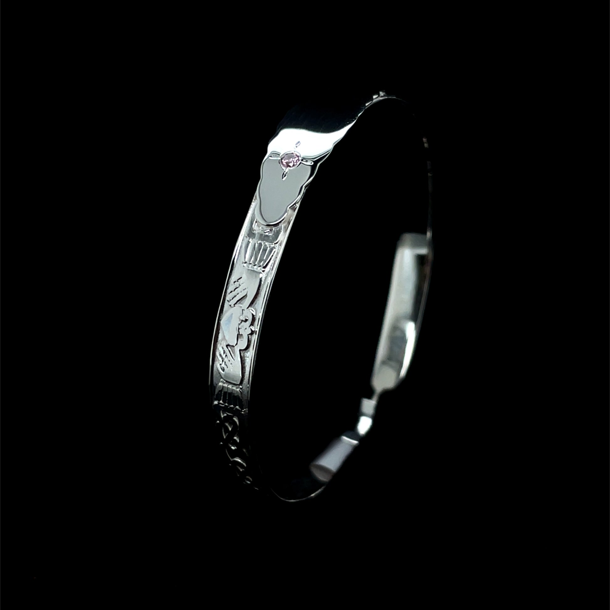 Silver Baby Bangle Claddagh & Celtic Band with Pink CZ SB502