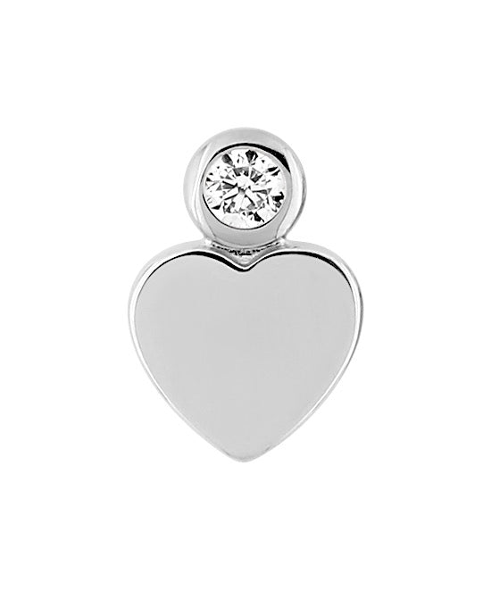 Silver CZ Heart Single Stud Earring, post & scroll fitting.