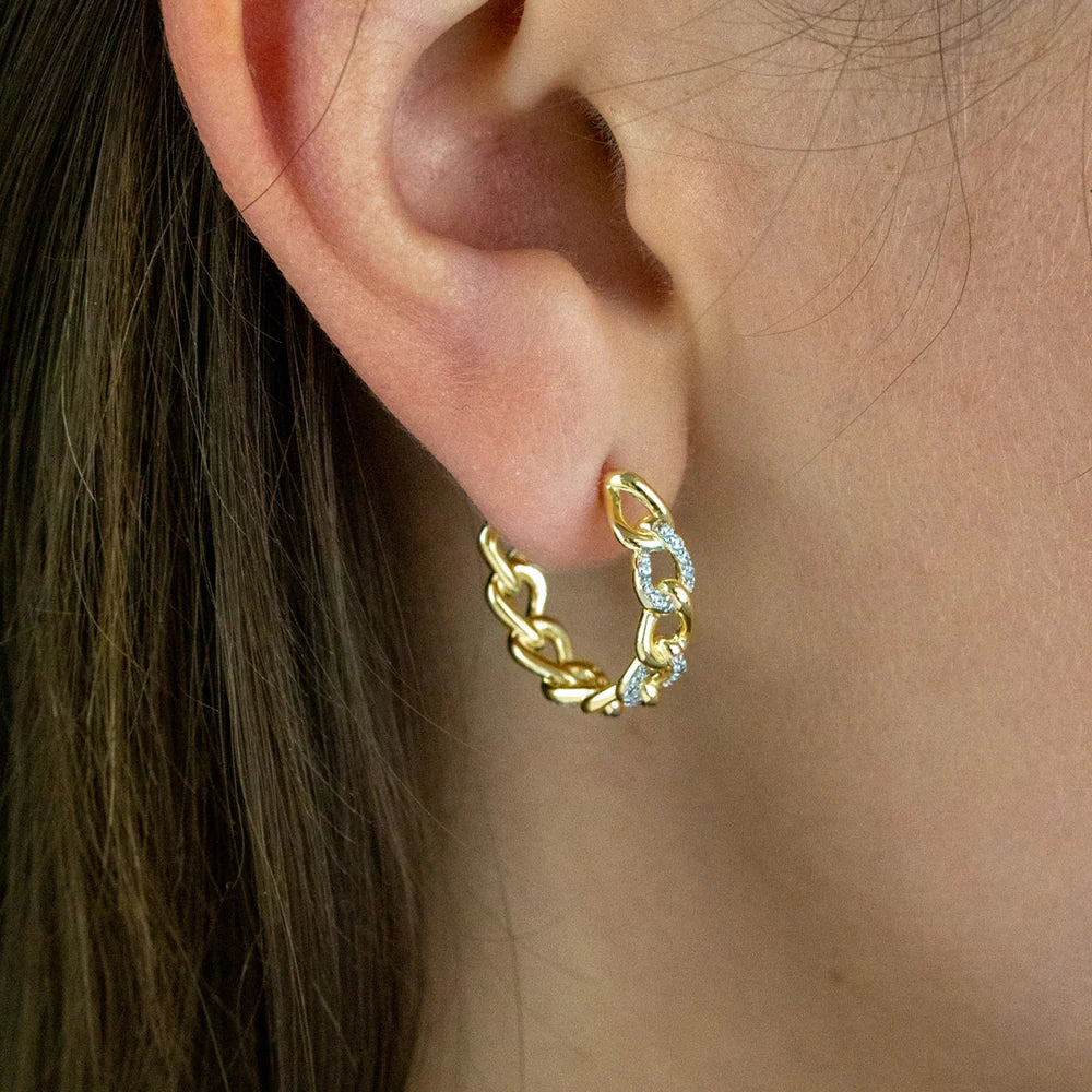 Silver Gold-plated Chain Link Hoop Earrings Medium ST2069