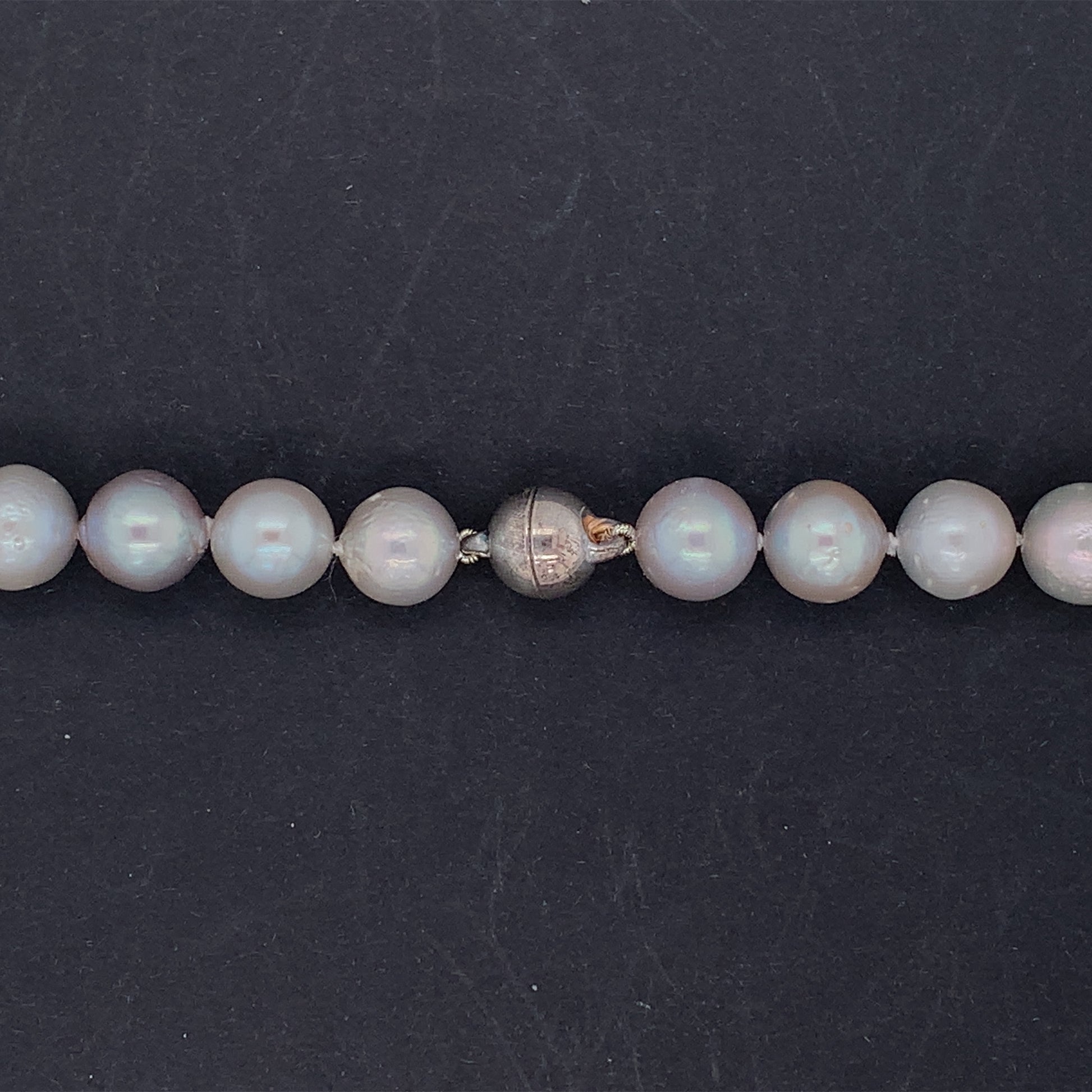 Silver-Grey Freshwater Cultured Pearl Necklace, individually knotted, with silver magnetic ball clasp.
