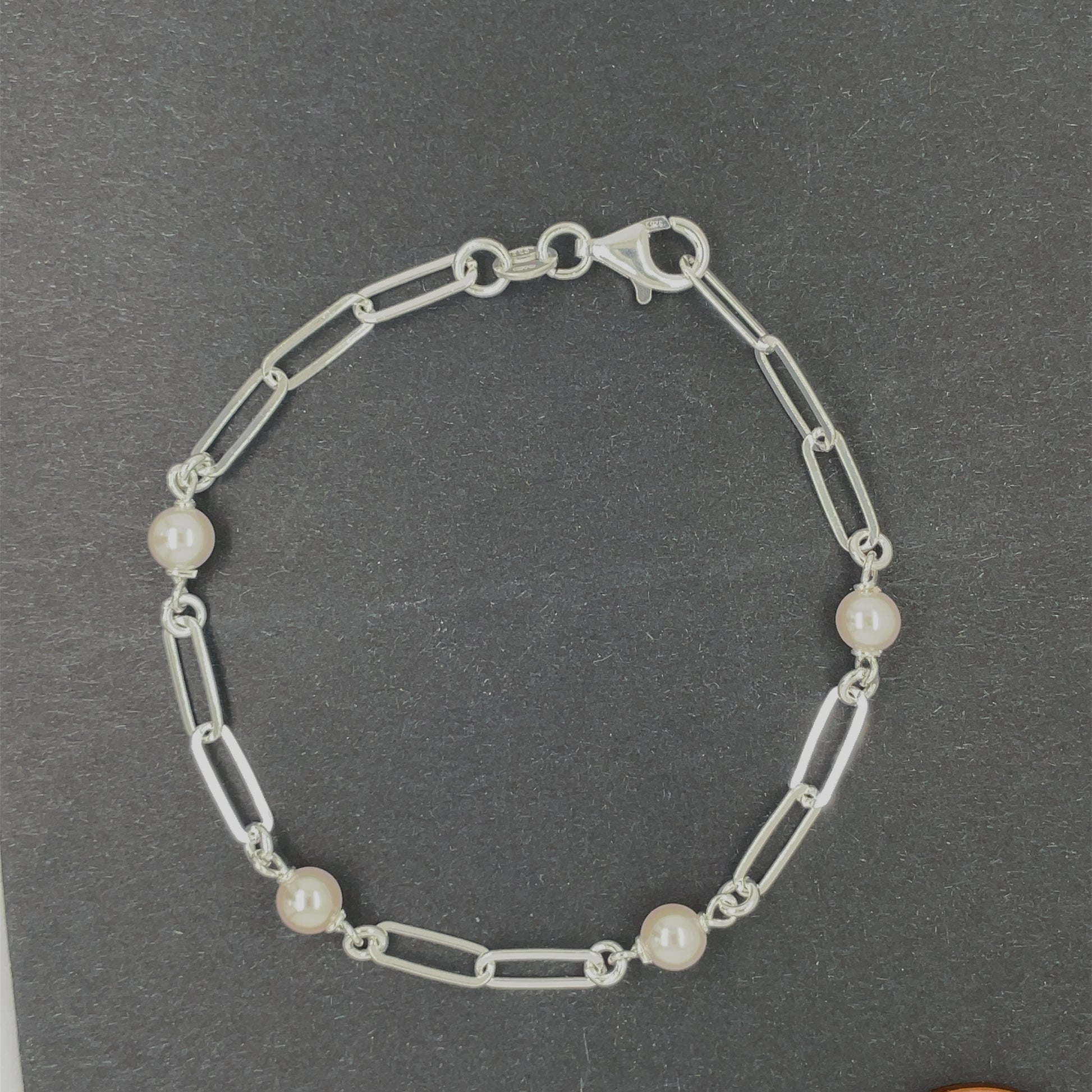 Silver Oblong Link & Pearl Bracelet