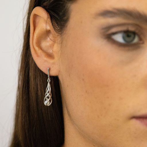 Silver Open Pearl Twist Drop Earrings