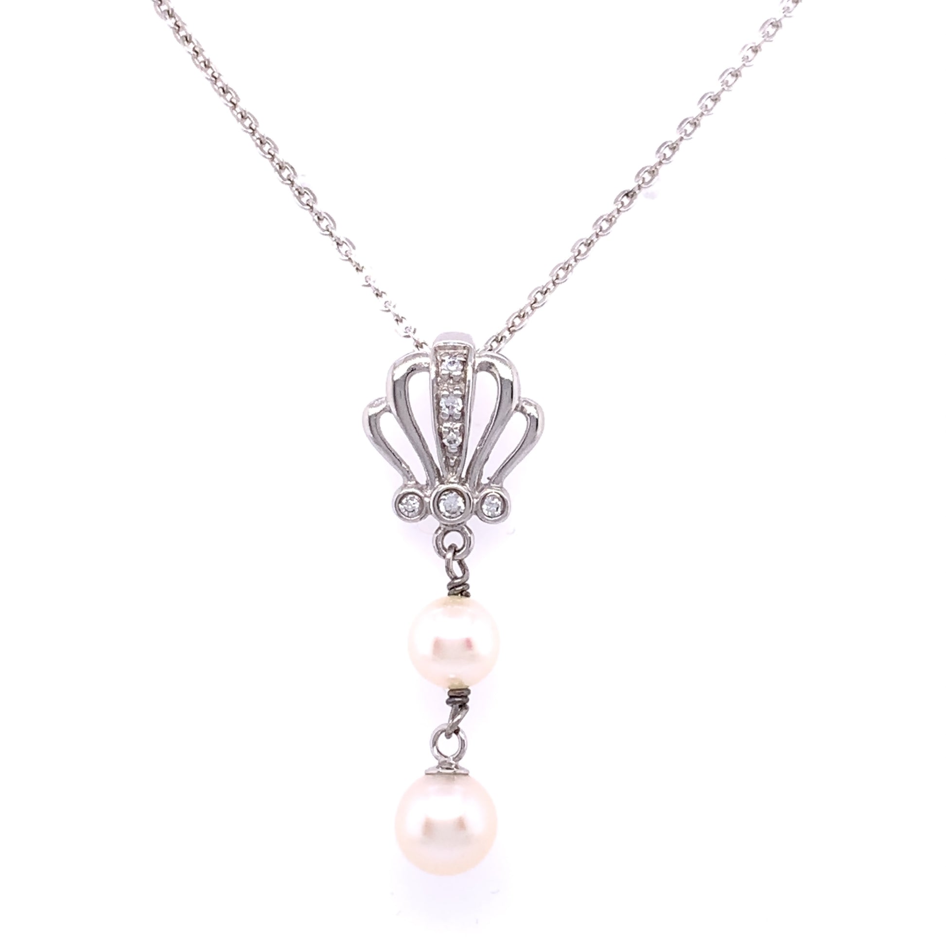 Silver Pearl & CZ Deco Pendant on 18 inch chain