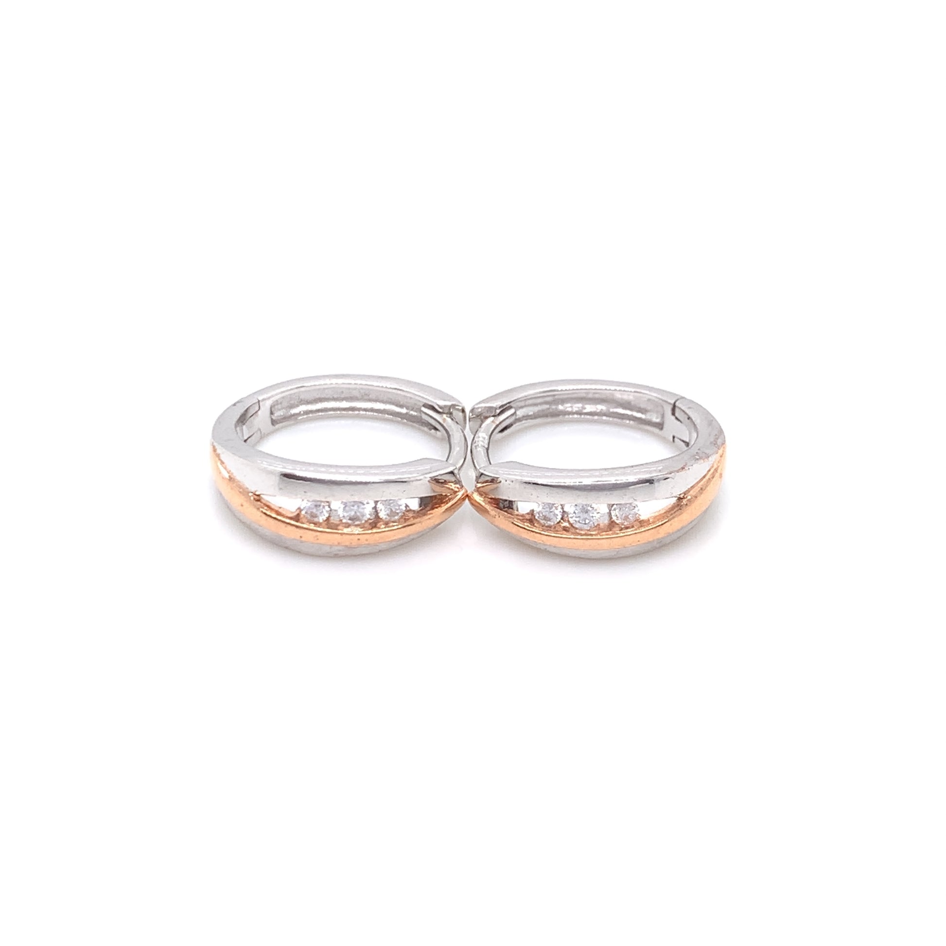 Sterling Silver Rose Gold-plated CZ 14mm Huggie Hoop Earrings SE3263/G