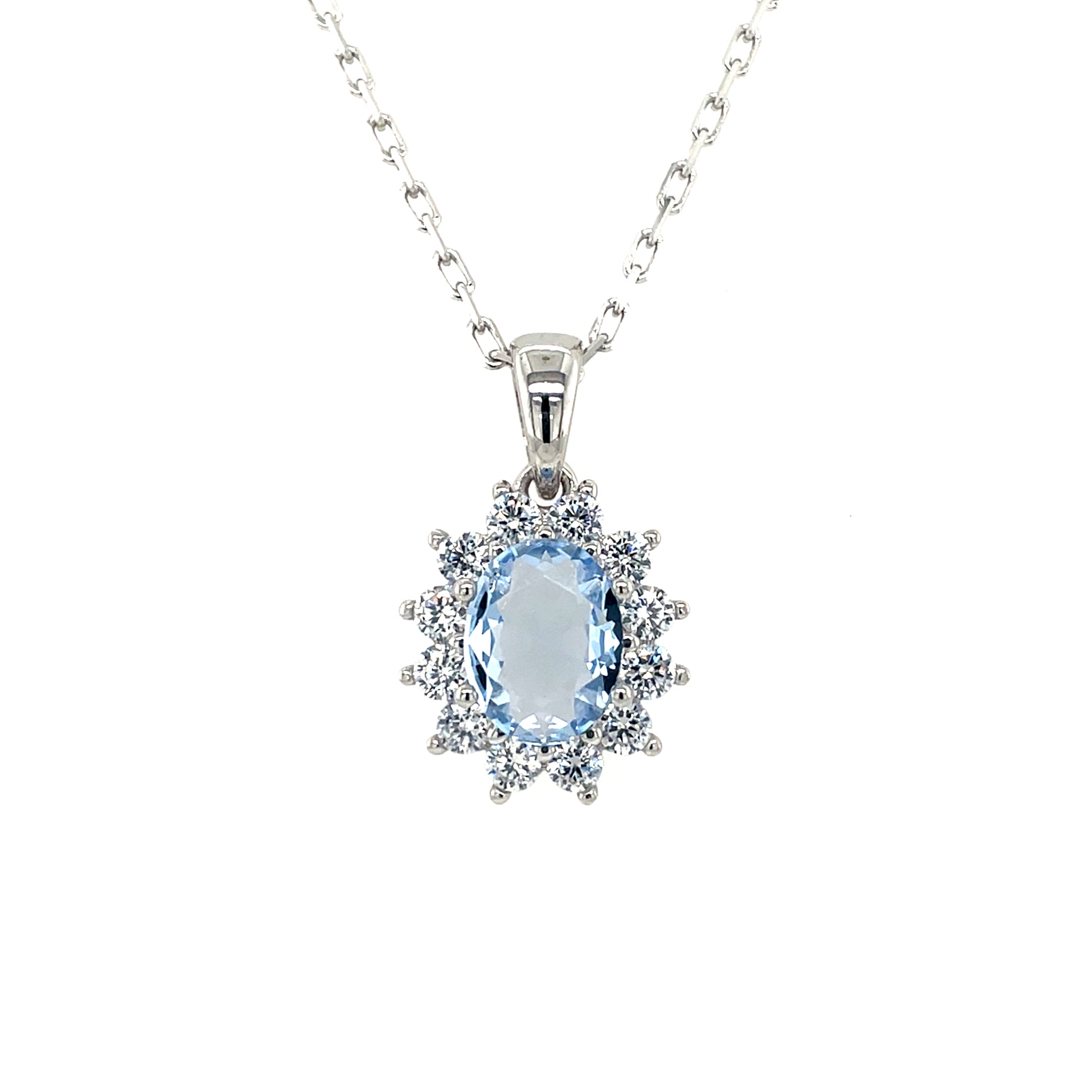 Sterling Silver Aqua CZ Cluster Pendant SP5568/AQ