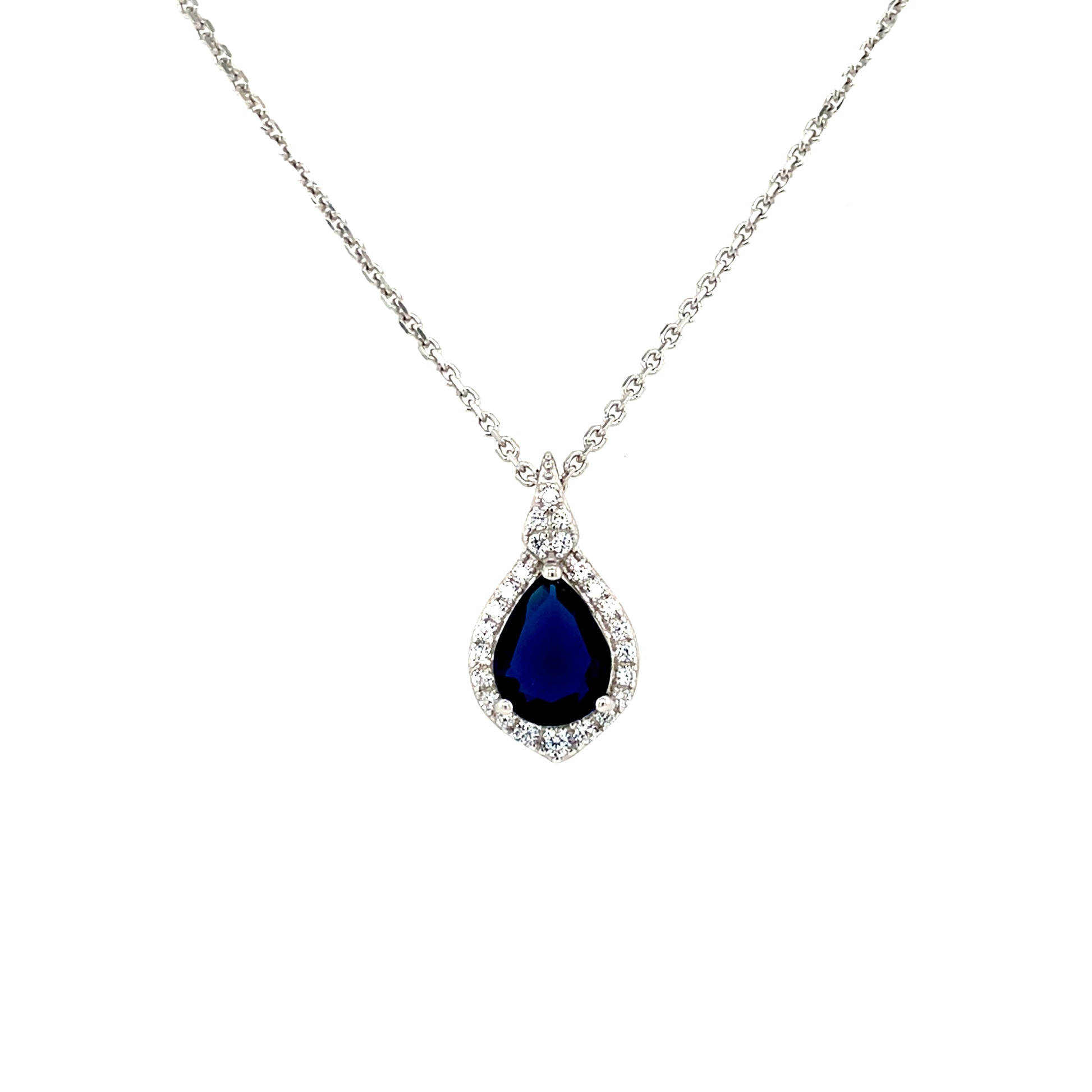 Sterling Silver Blue CZ Teardrop Pendant on 18 inch chain.