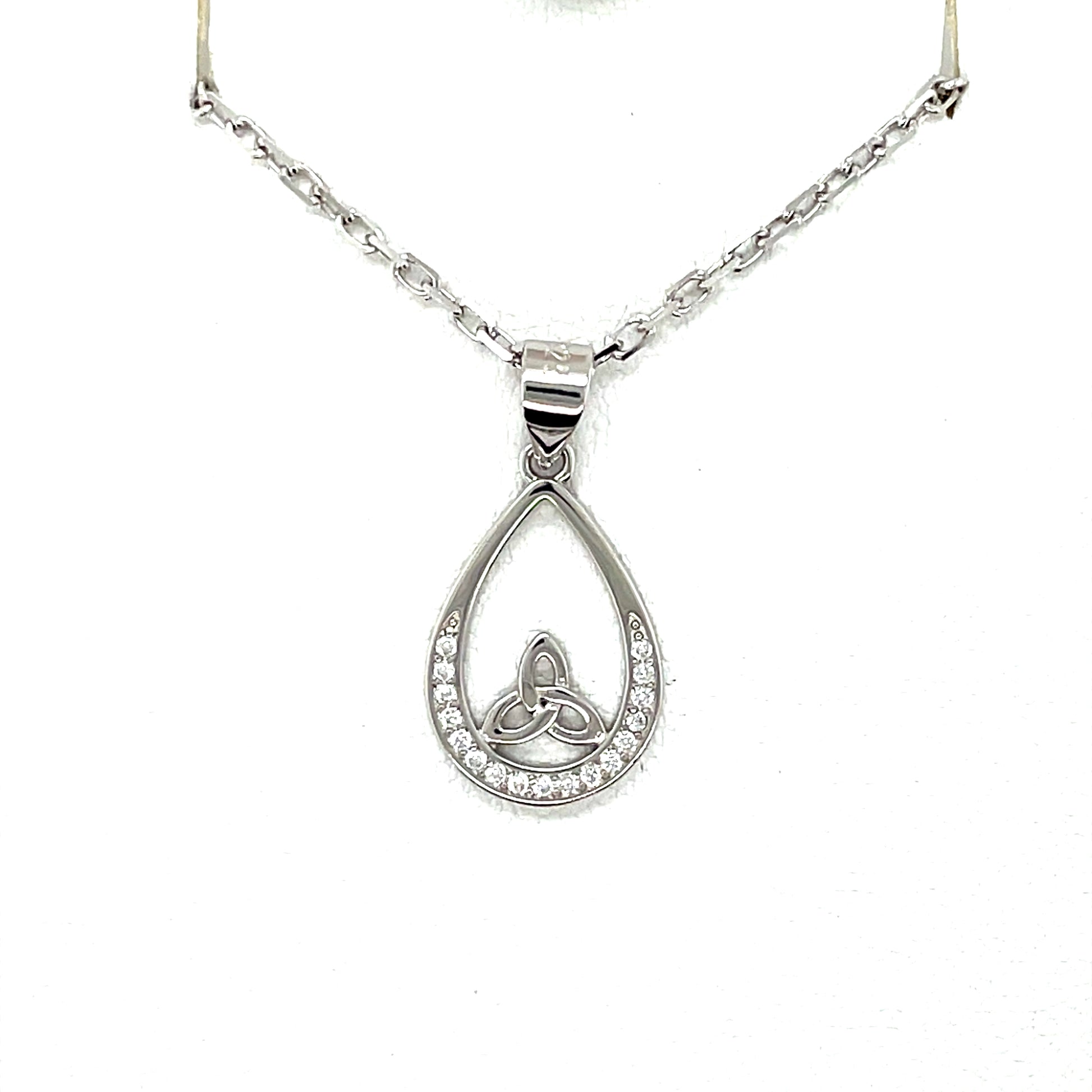 Sterling Silver Celtic Trinity Knot CZ Pendant on 18 inch chain.