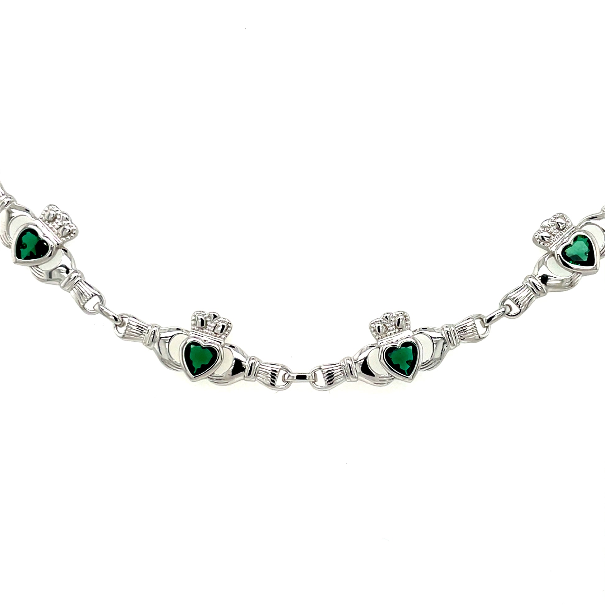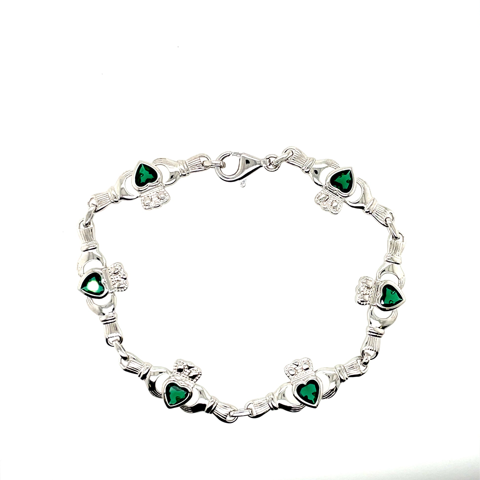 Sterling Silver Claddagh Green CZ Bracelet SCBR17GR