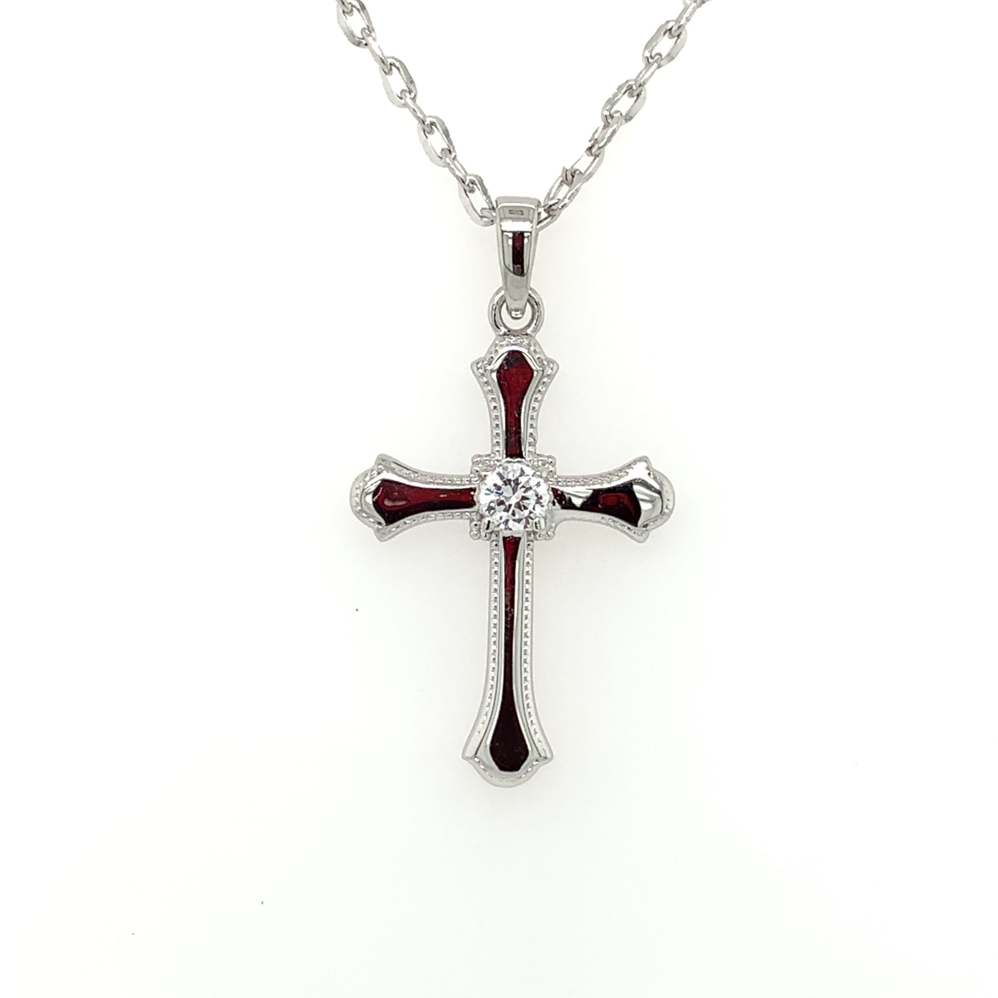 Sterling Silver Cross CZ Centre on 18 inch chain.