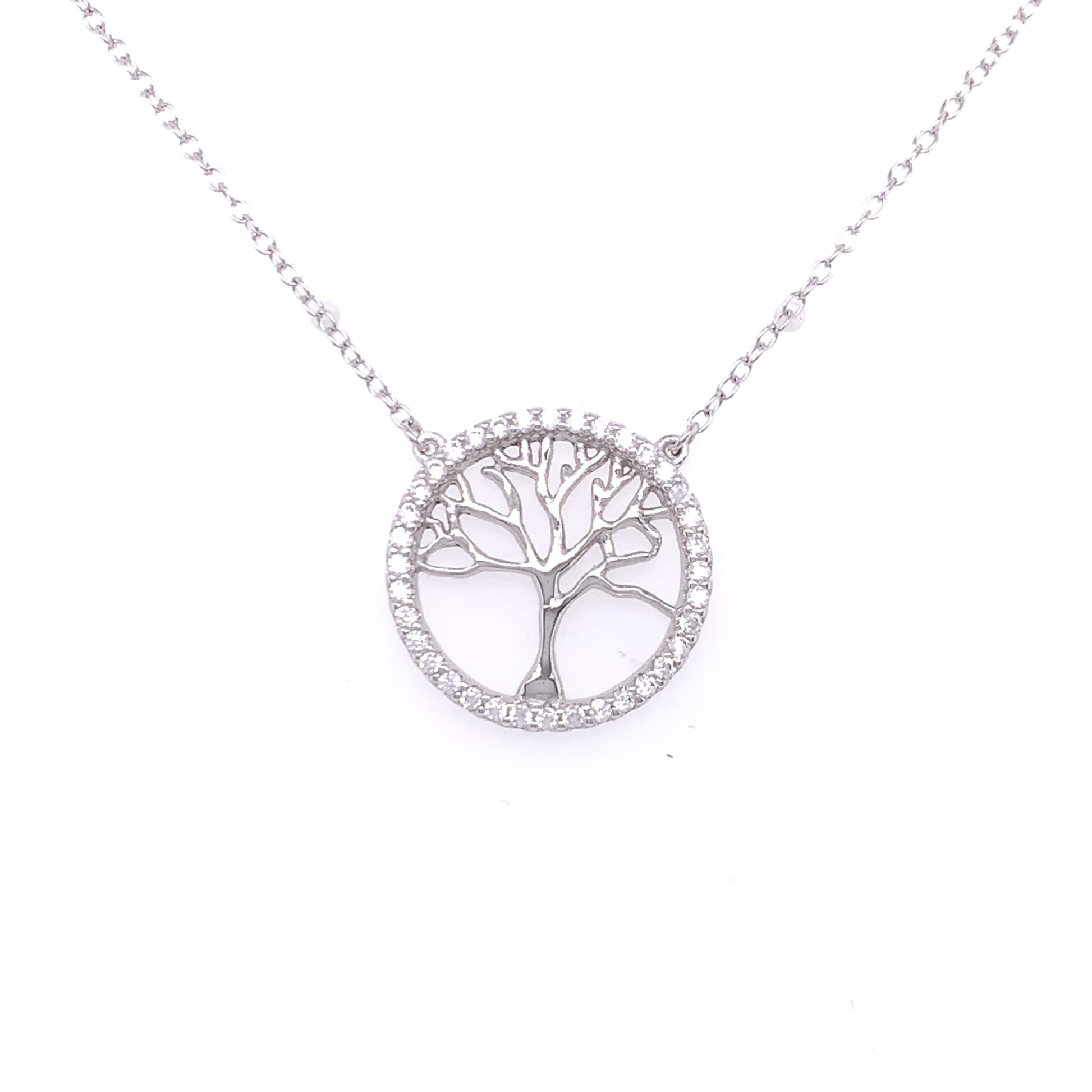 Sterling Silver CZ Bezel Tree Of Life Necklace on 18 inch chain.
