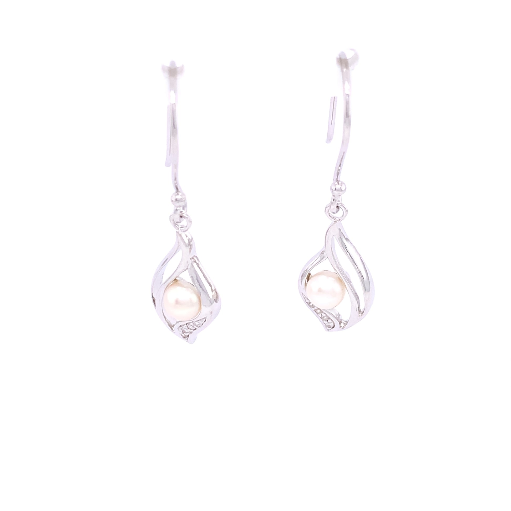 Sterling Silver CZ Freshwater Pearl Drop Hook Earrings SE449