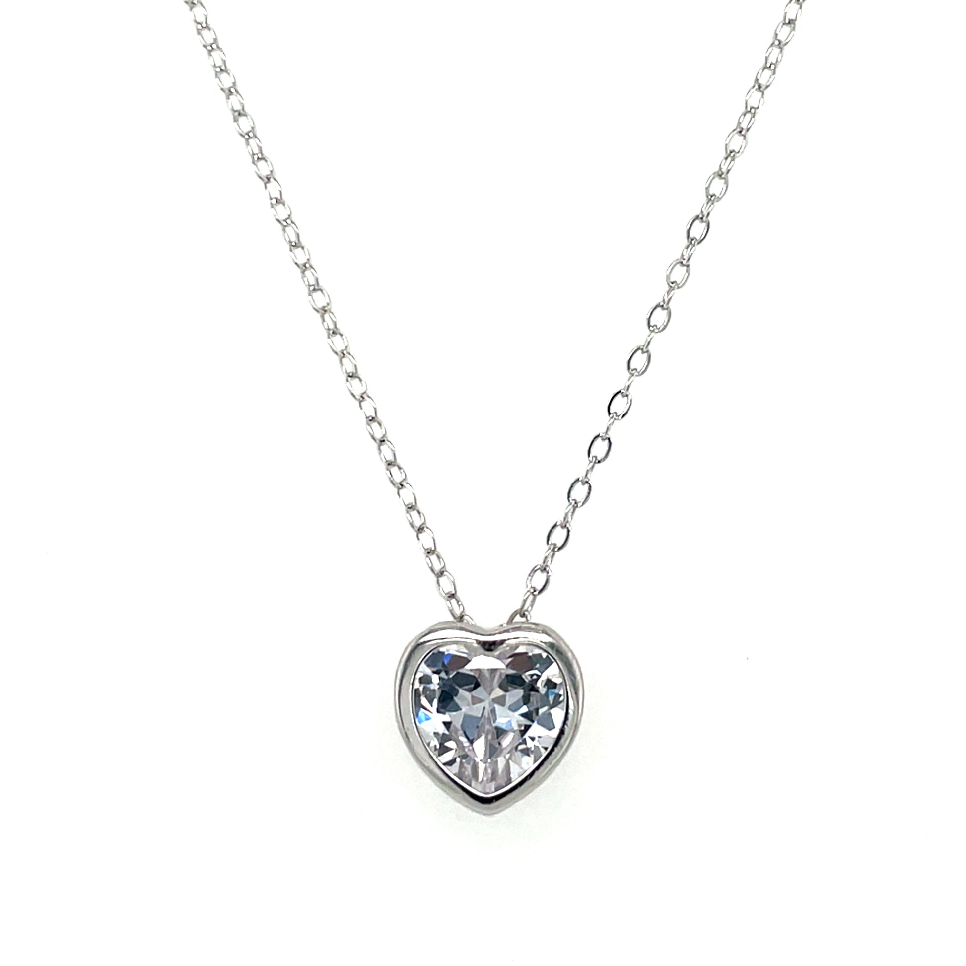 Sterling Silver CZ Heart Slider Pendant on 16-18 inch chain.