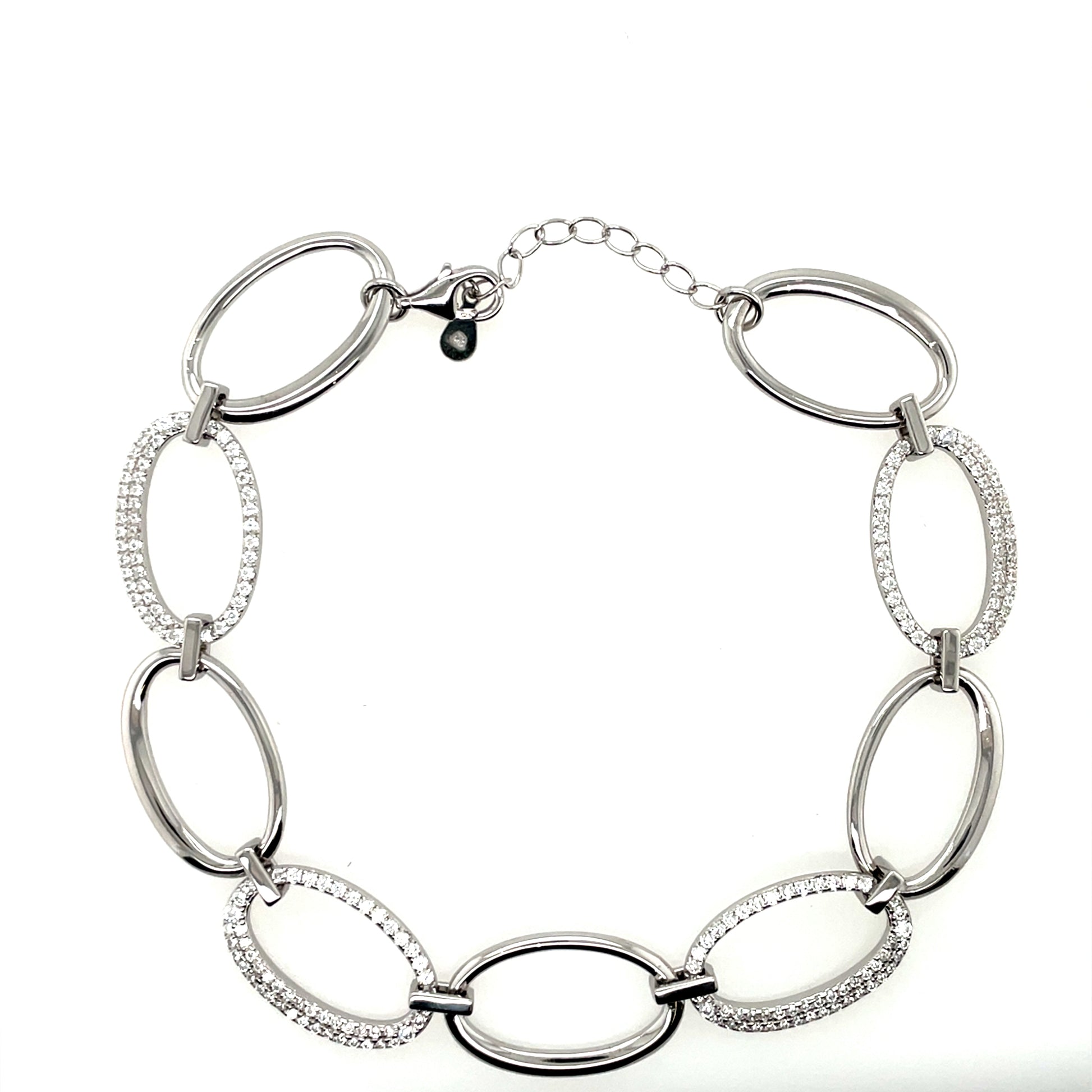 Sterling Silver CZ Oval Link Bracelet GL2077