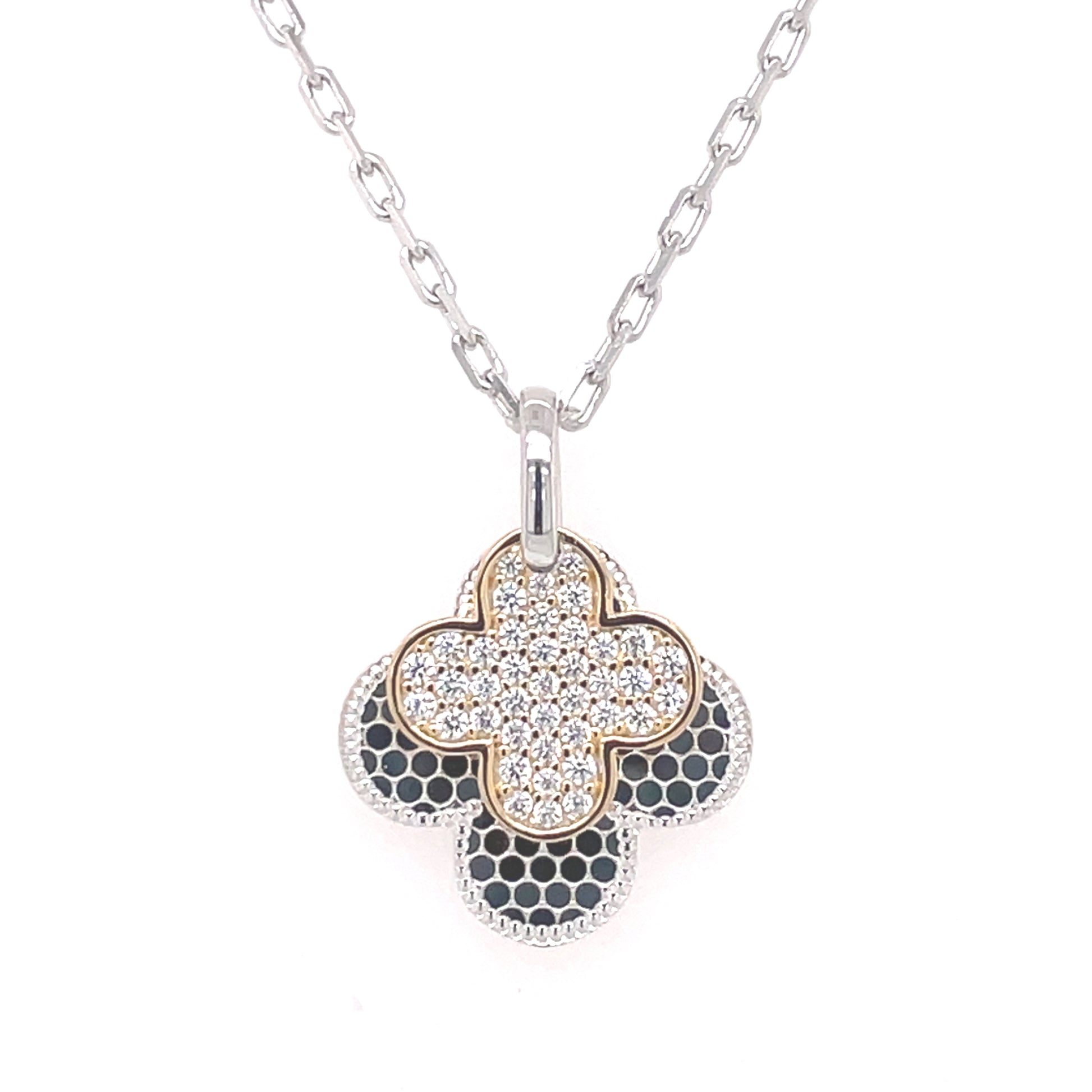 Sterling Silver CZ Gold-plated Quatrefoil Pendant on 18 inch chain.
