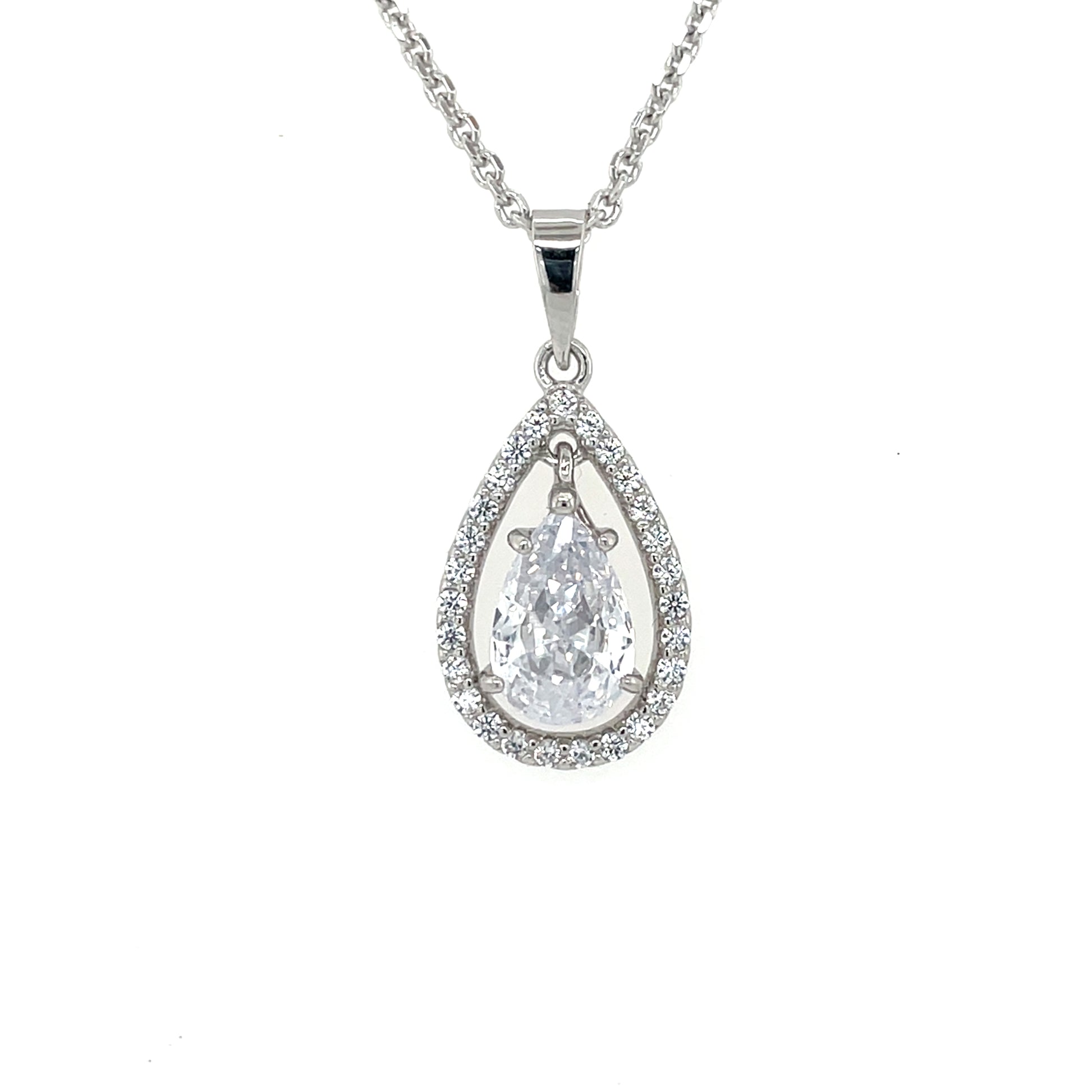 Sterling Silver CZ Teardrop Pendant on 18 inch chain.
