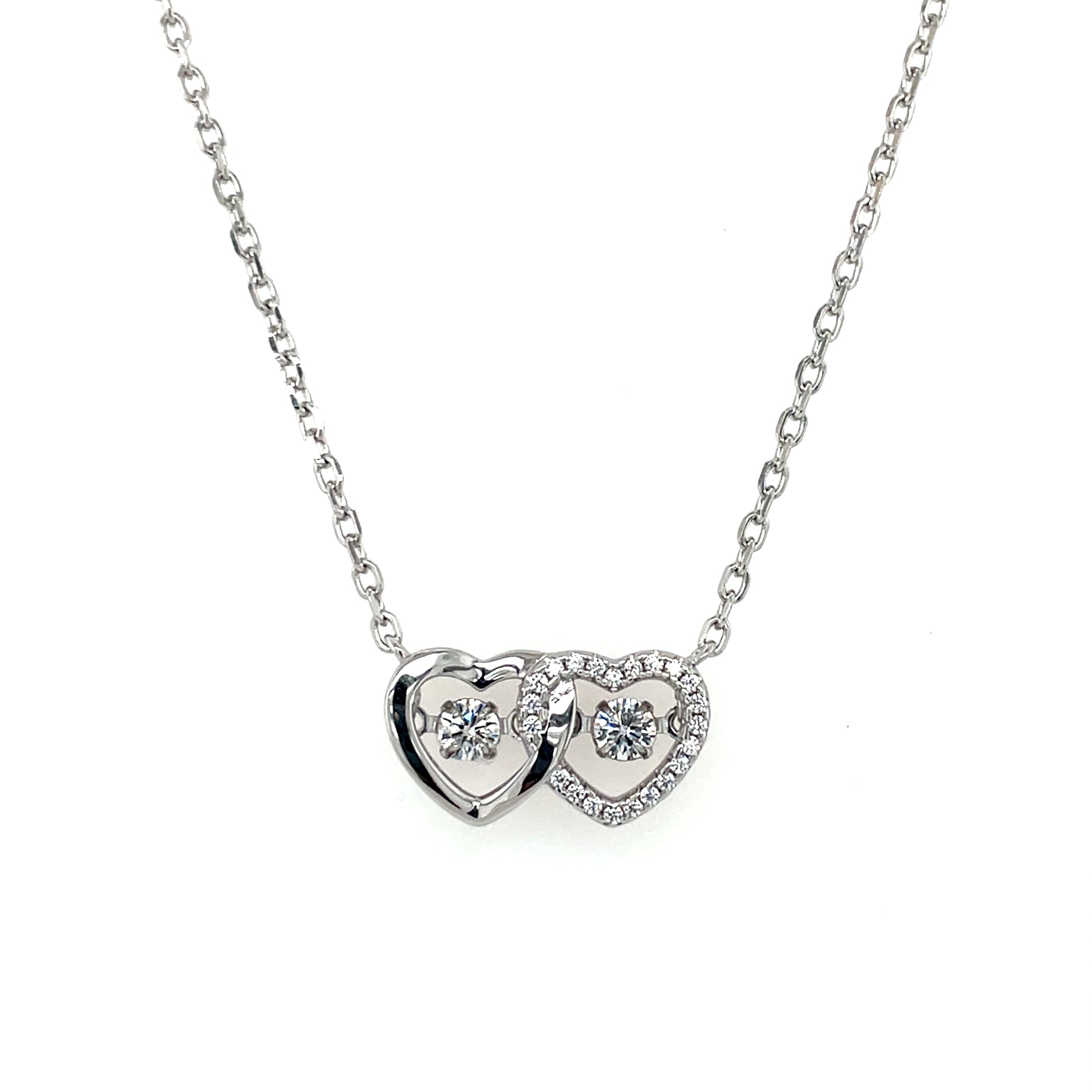 Sterling Silver Double Heart Dancing CZ Pendant on 16-18 inch chain.