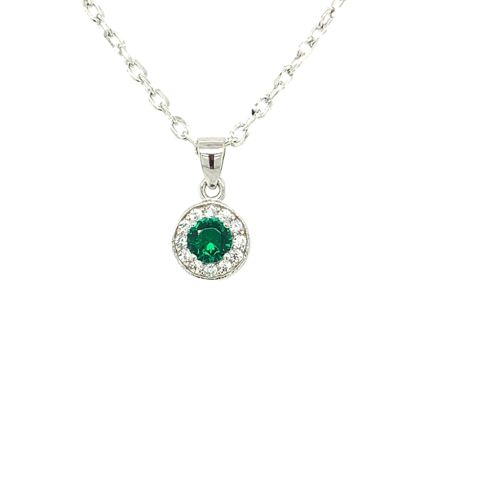 Sterling Silver Emerald CZ Halo Pendant on 18 inch chain