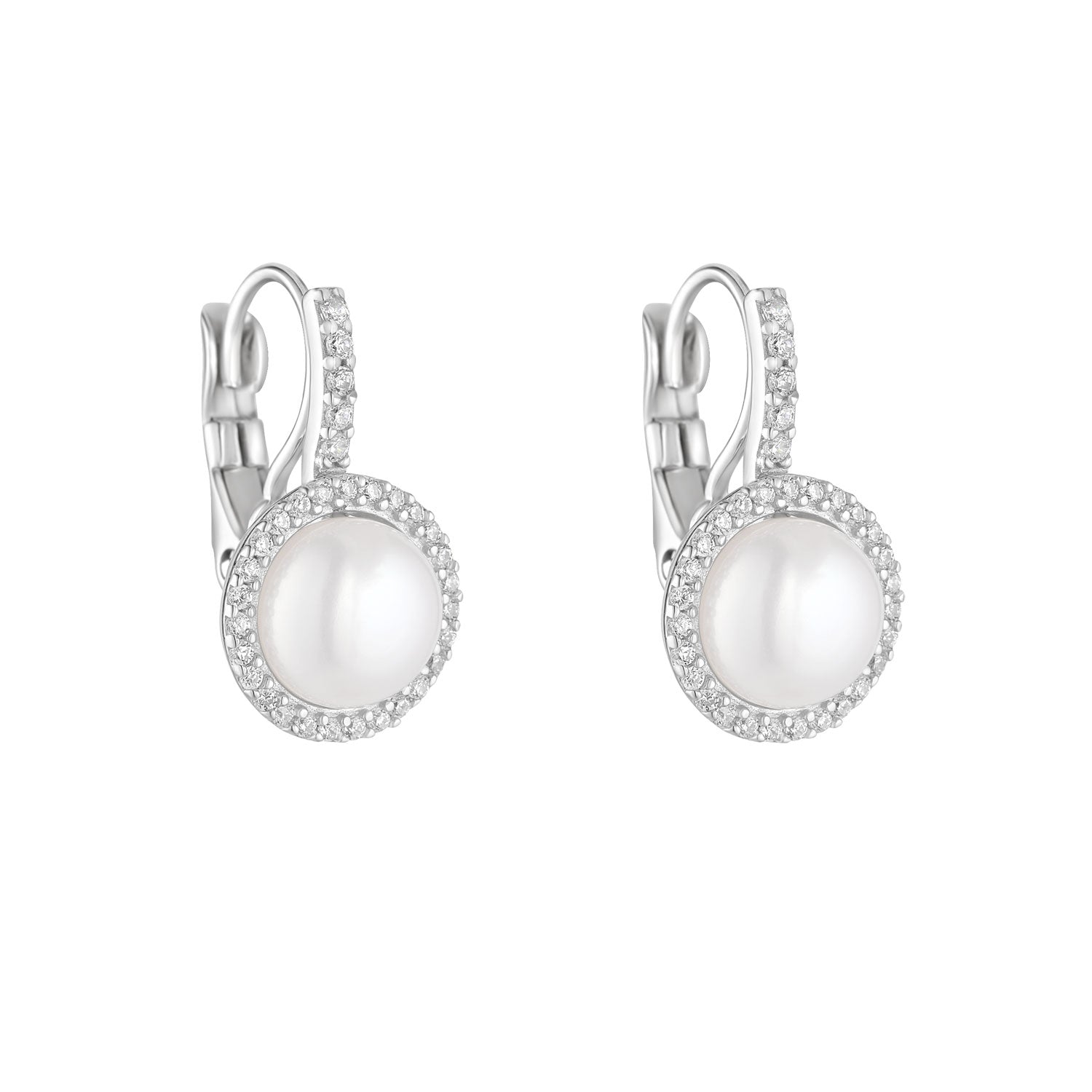 Sterling Silver Freshwater Pearl & CZ Drop Earrings on german wire fittings.