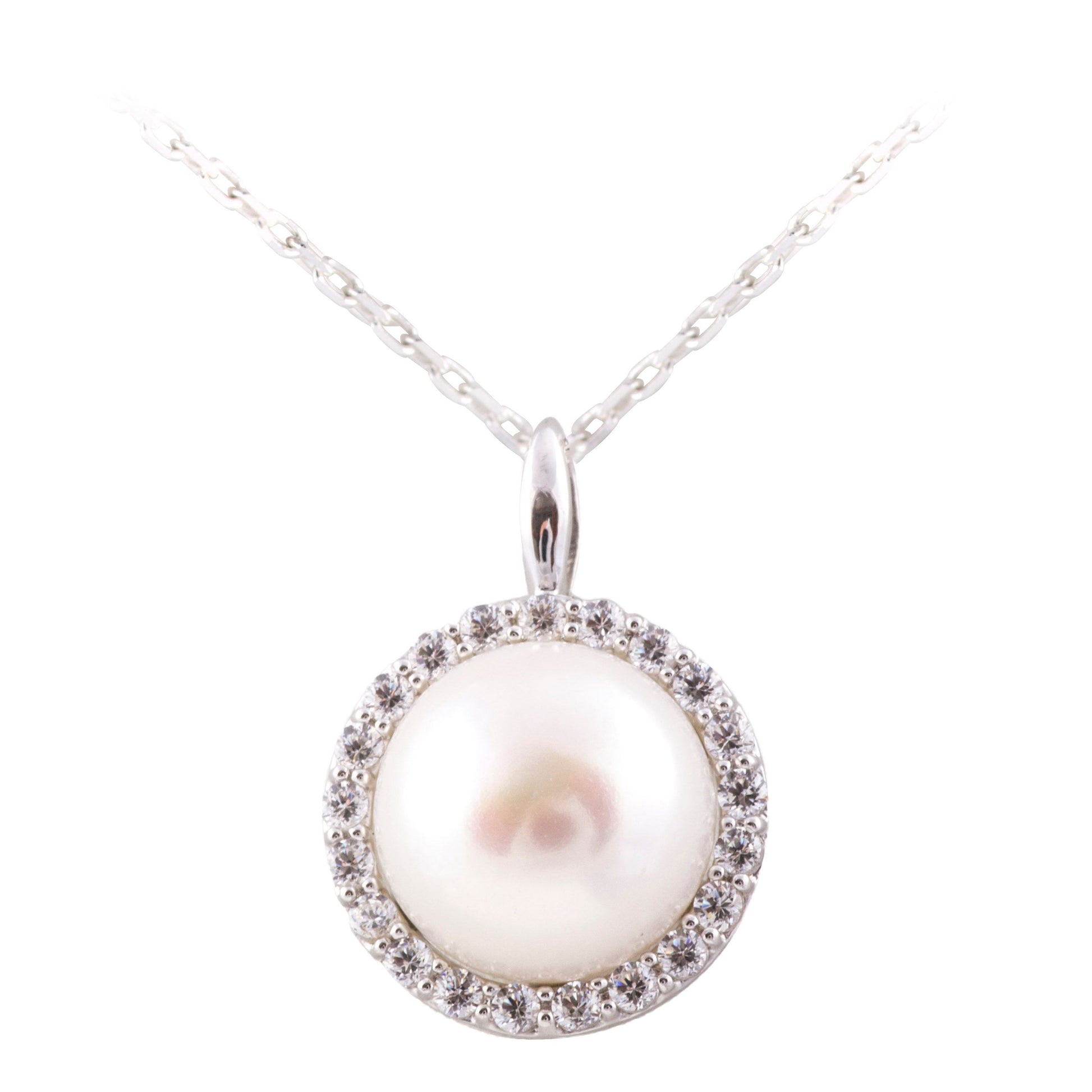 Sterling Silver Freshwater Pearl CZ Surround Pendant