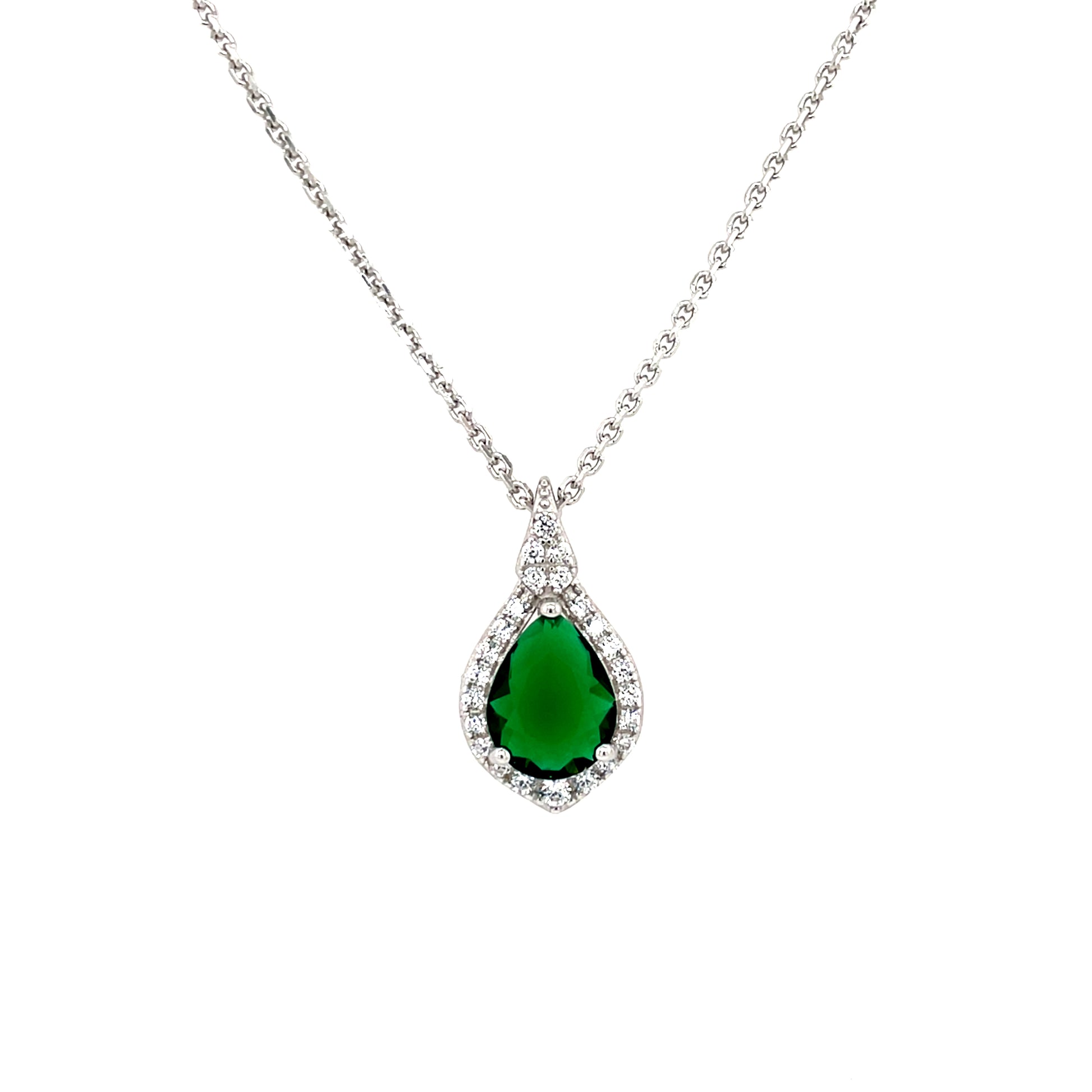 Sterling Silver Green CZ Teardrop Pendant on 18 inch chain.