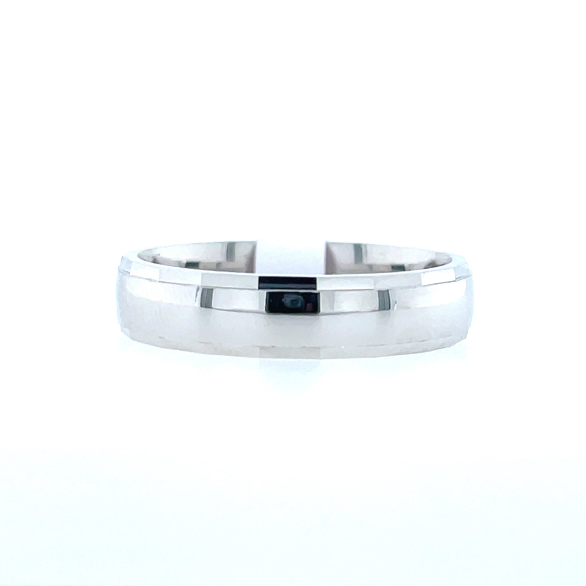 Sterling Silver Mens 5mm Court Wedding Ring, Diamond-cut edges.