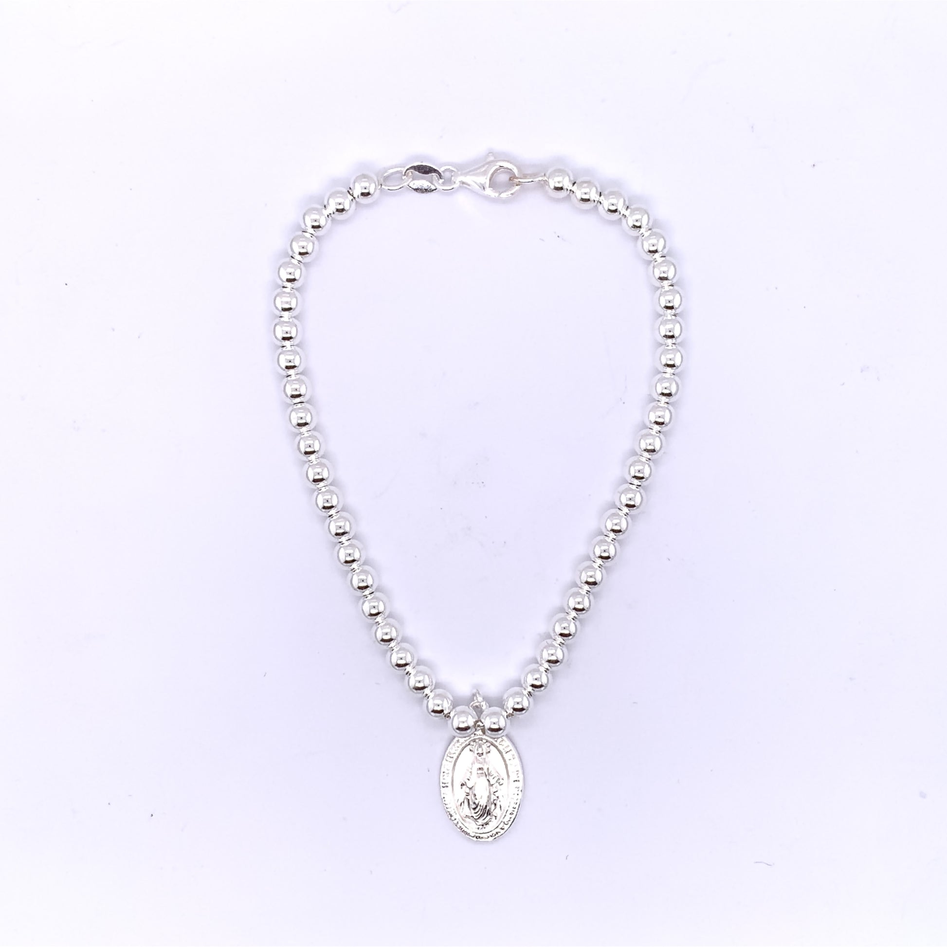 Sterling Silver Miraculous Medal Ball Bracelet GL1218
