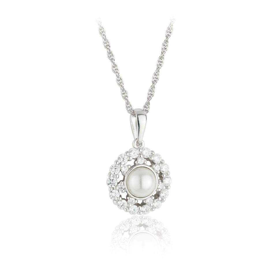 Sterling Silver Pearl & CZ Lace Cluster Pendant