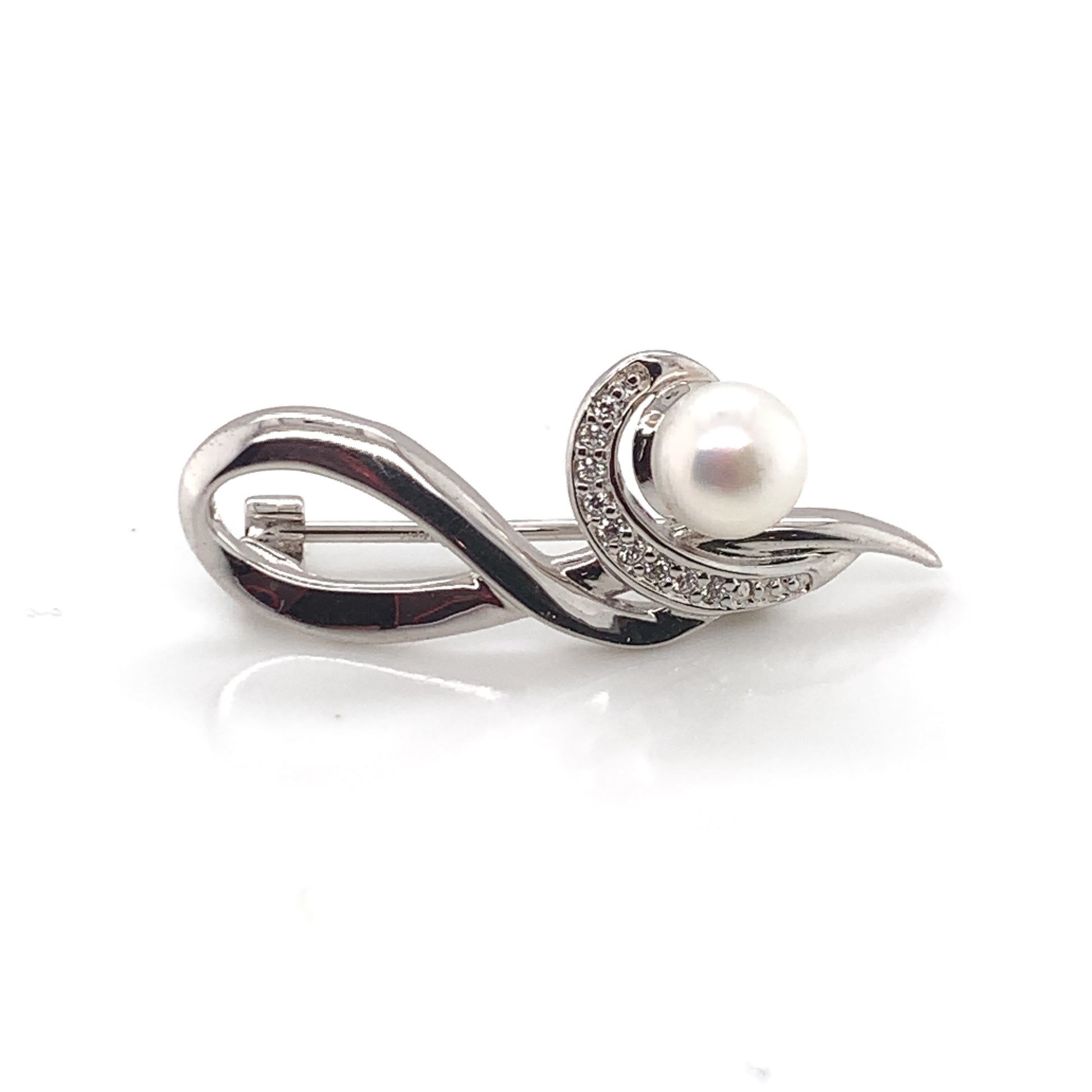 Sterling Silver Pearl & CZ Swirl Brooch