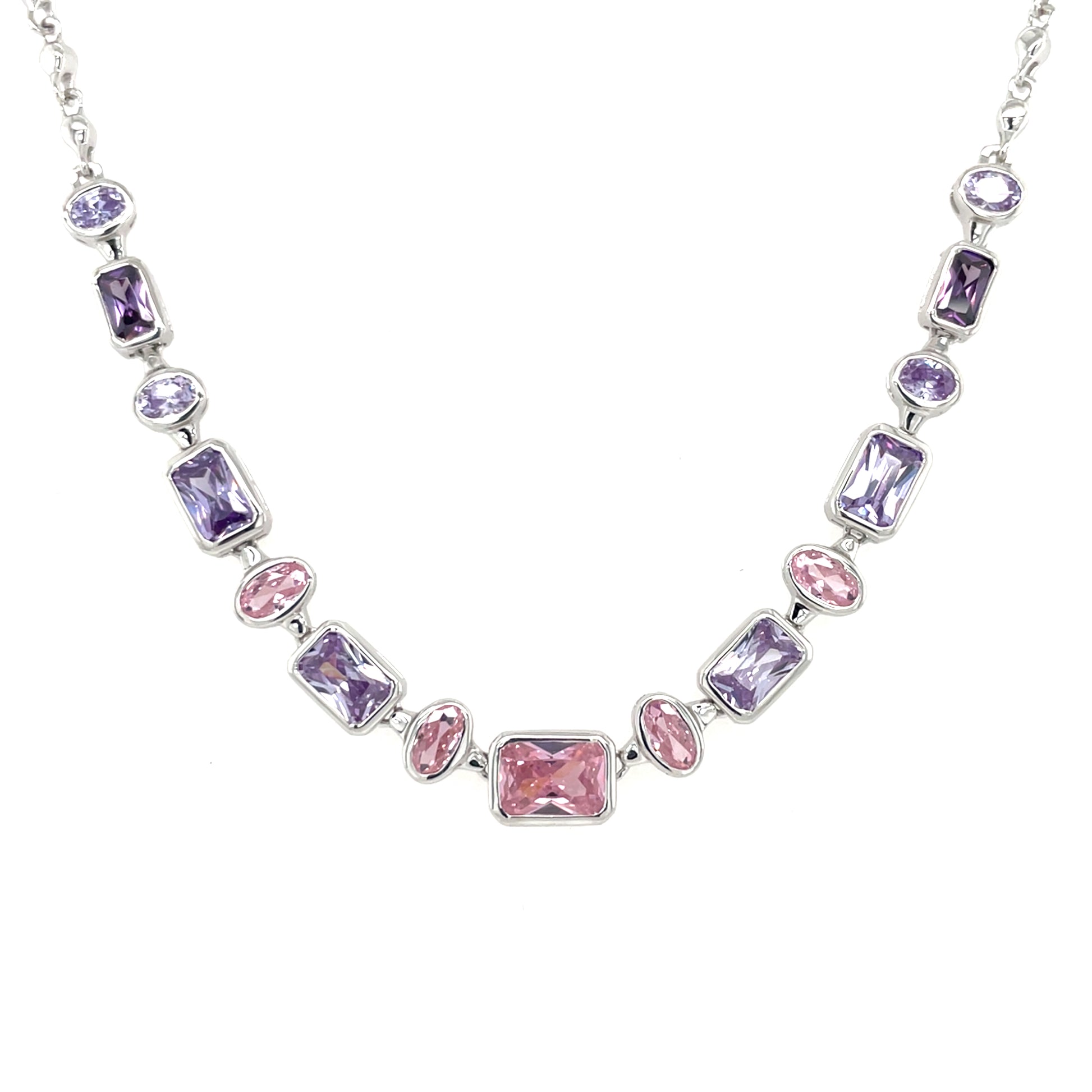 Sterling Silver Pink / Lavender CZ Necklace NC357/AM